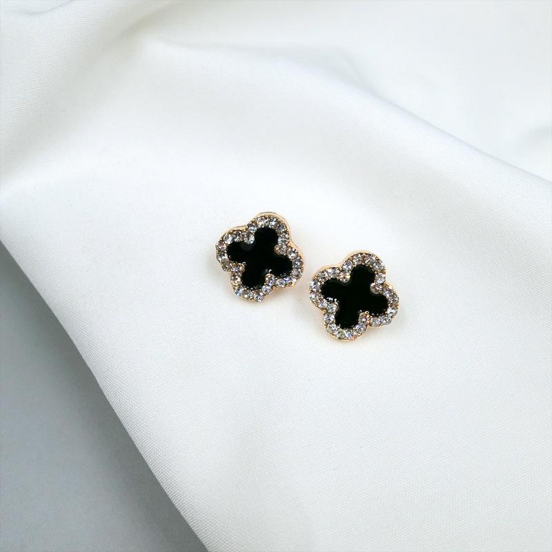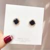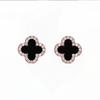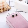 Pendientes clásicos de plata S925 con forma de aguja y cuatro hojas de hierba de la suerte, sencillos y con forma de lazo de diamantes y cuadrados de amor.