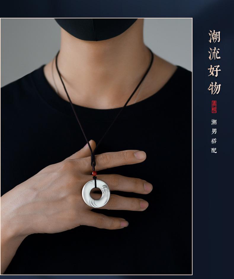 Colgante de hebilla de seguridad de plata esterlina 999 para hombre y mujer, retro, estilo nacional, regalo de cumpleaños, accesorios de collar sólido