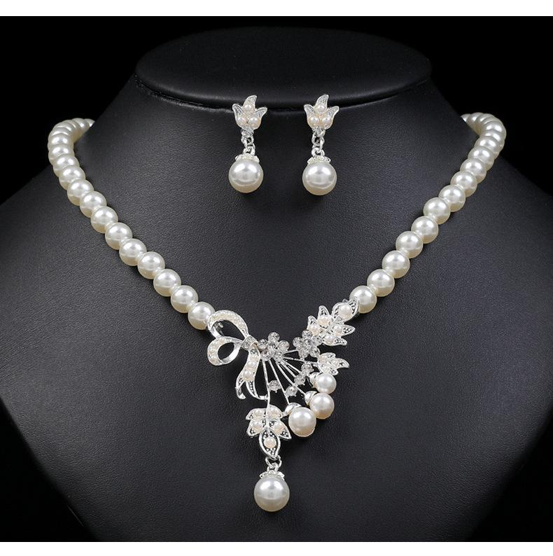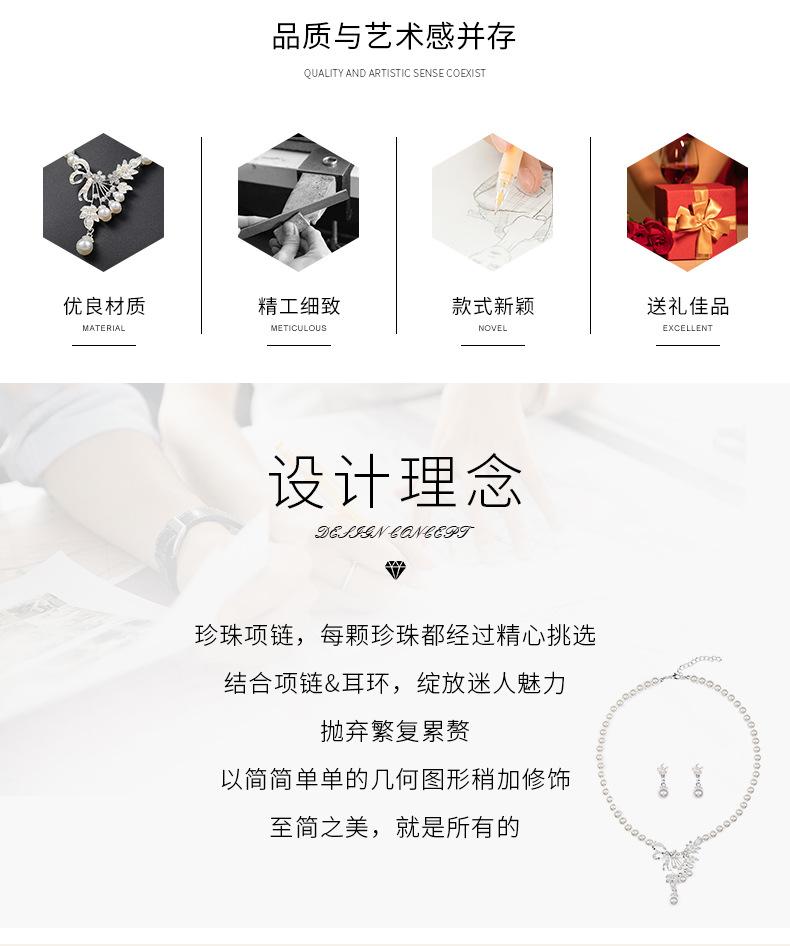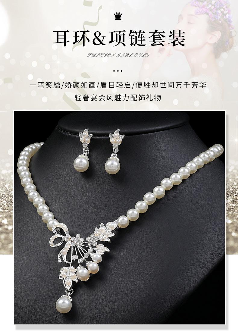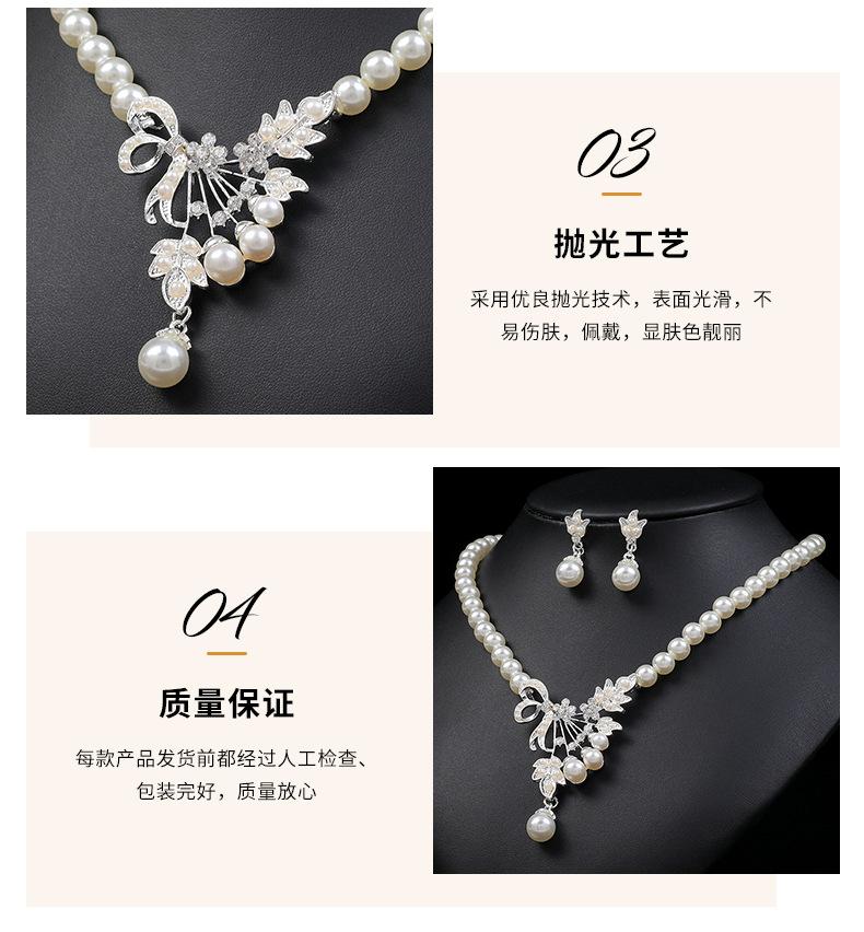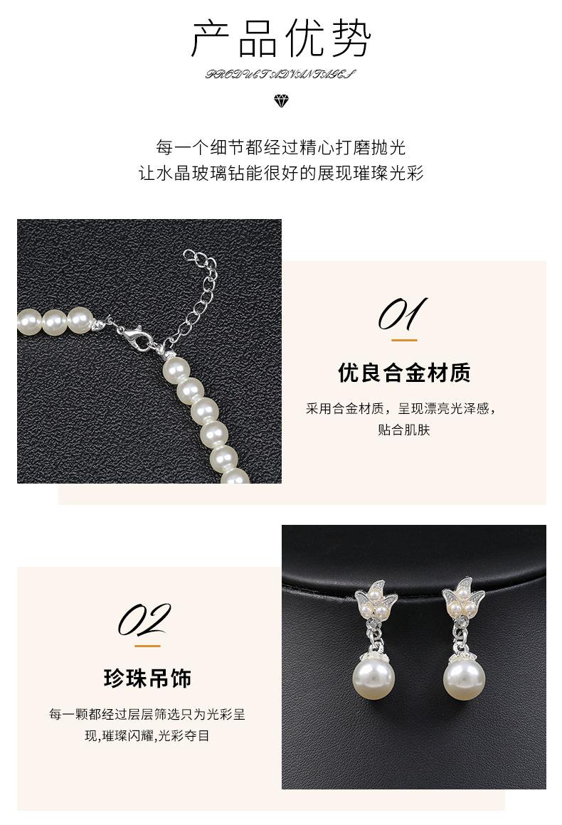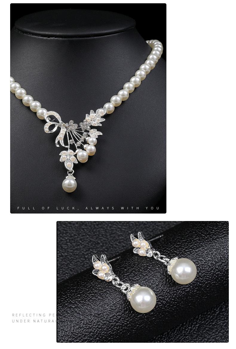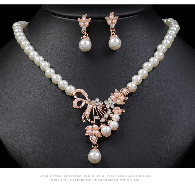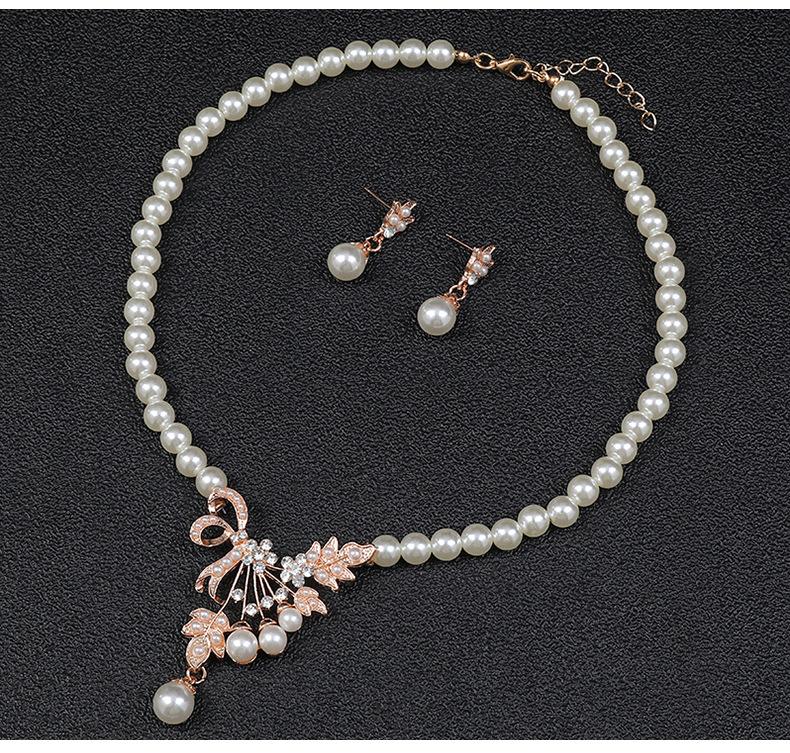 Juego de Collar y Aretes de Perlas Europeas y Americanas para Mujer, Moderno y Popular Aleación Gota Flor Vestido de Novia con Personalidad