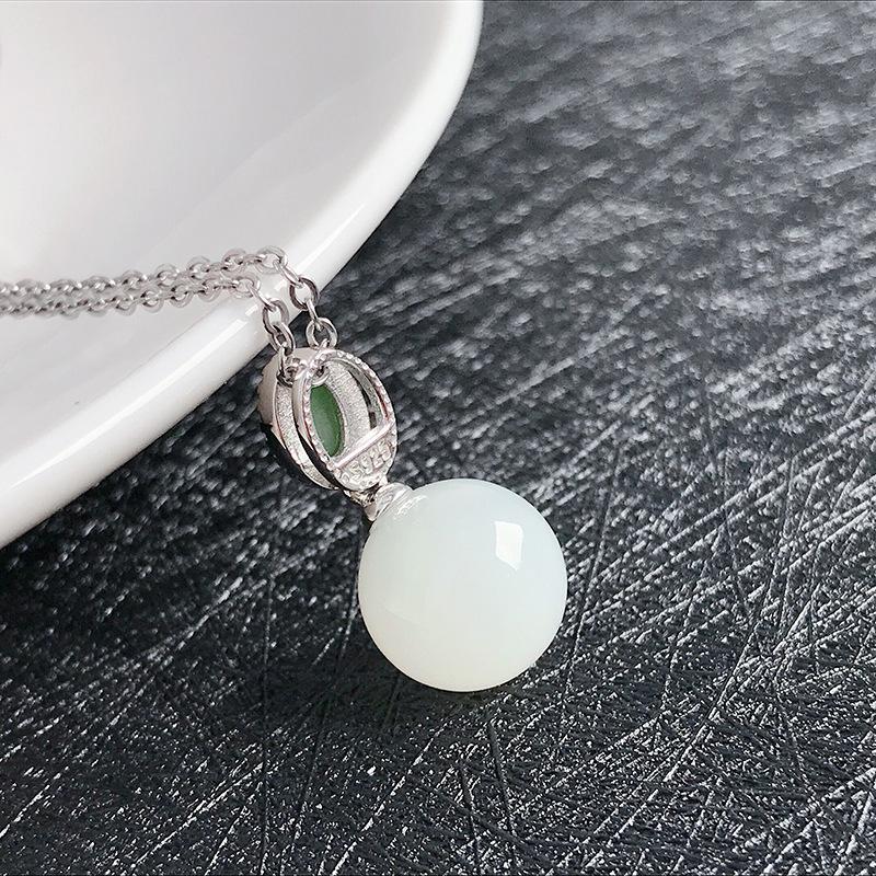 Compra Colgante de jade blanco hetiano natural de fábrica con forma de camino redondo S925, collar de jade para mujer al por mayor en Joom.pro