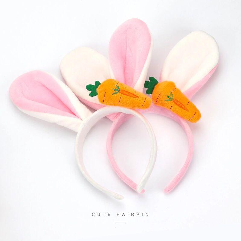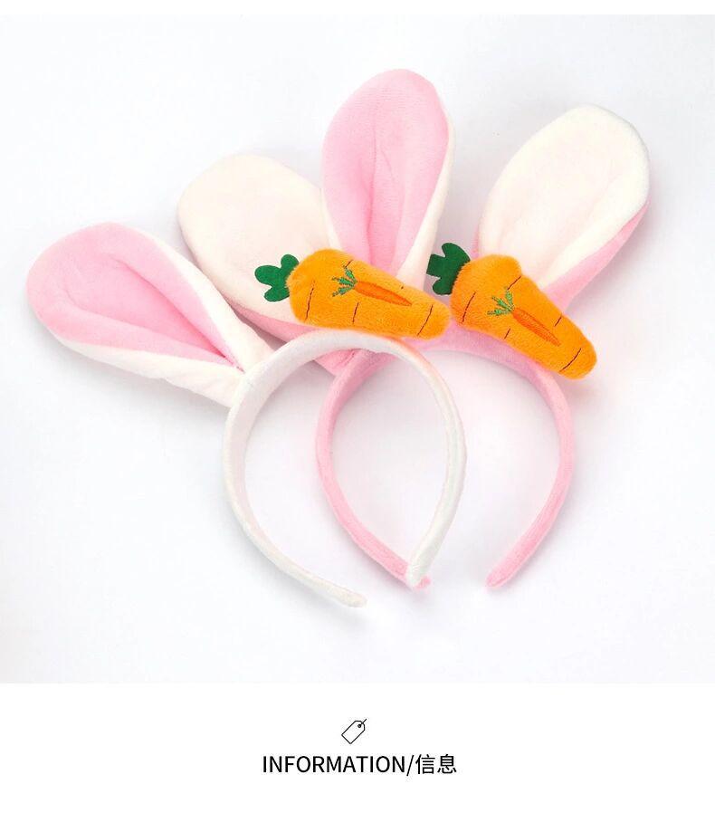 Diadema de felpa de conejo y zanahoria para niña, tocado de animal, accesorios para el cabello para jugar, accesorios para el cabello para niños, accesorios para el cabello con lindas orejas de conejo