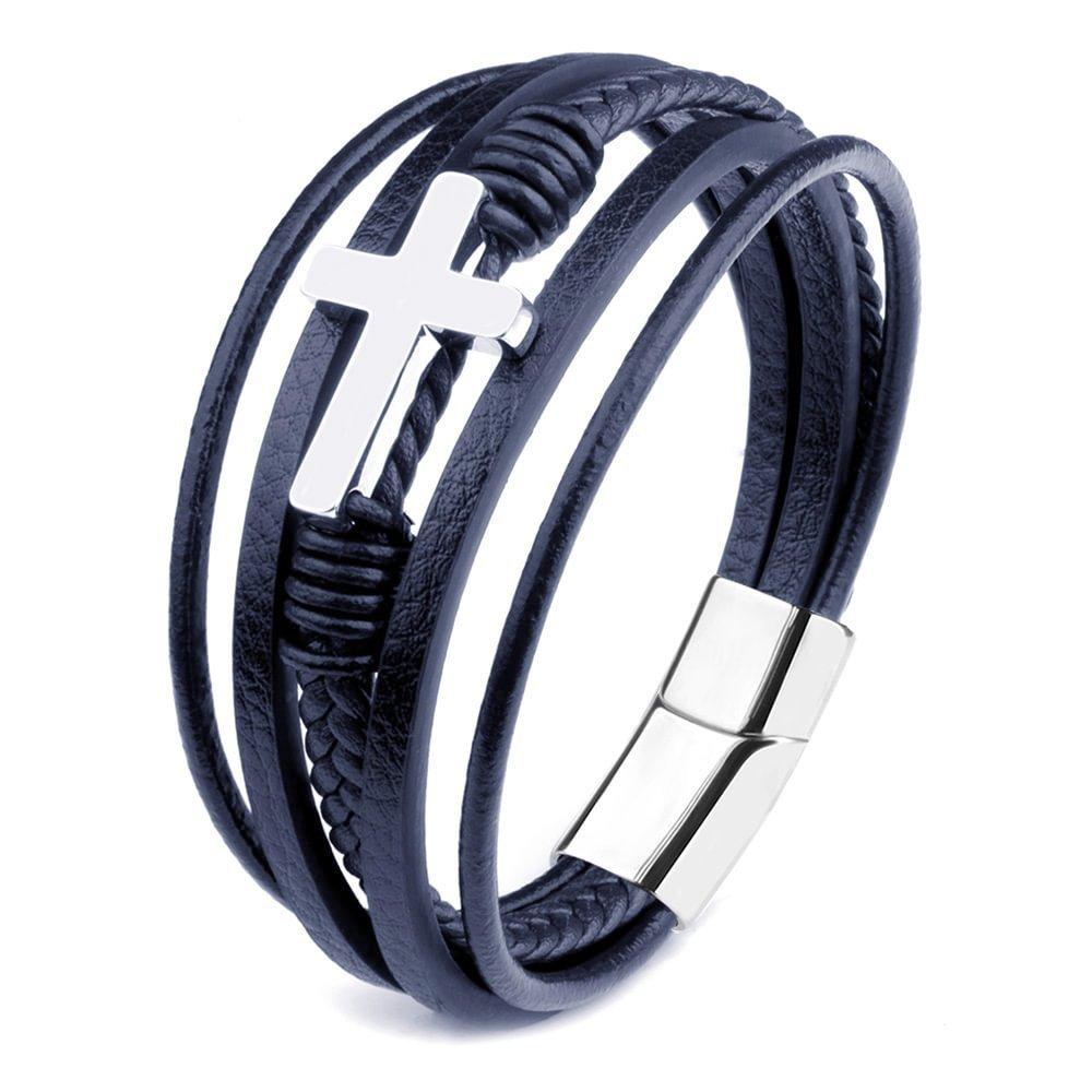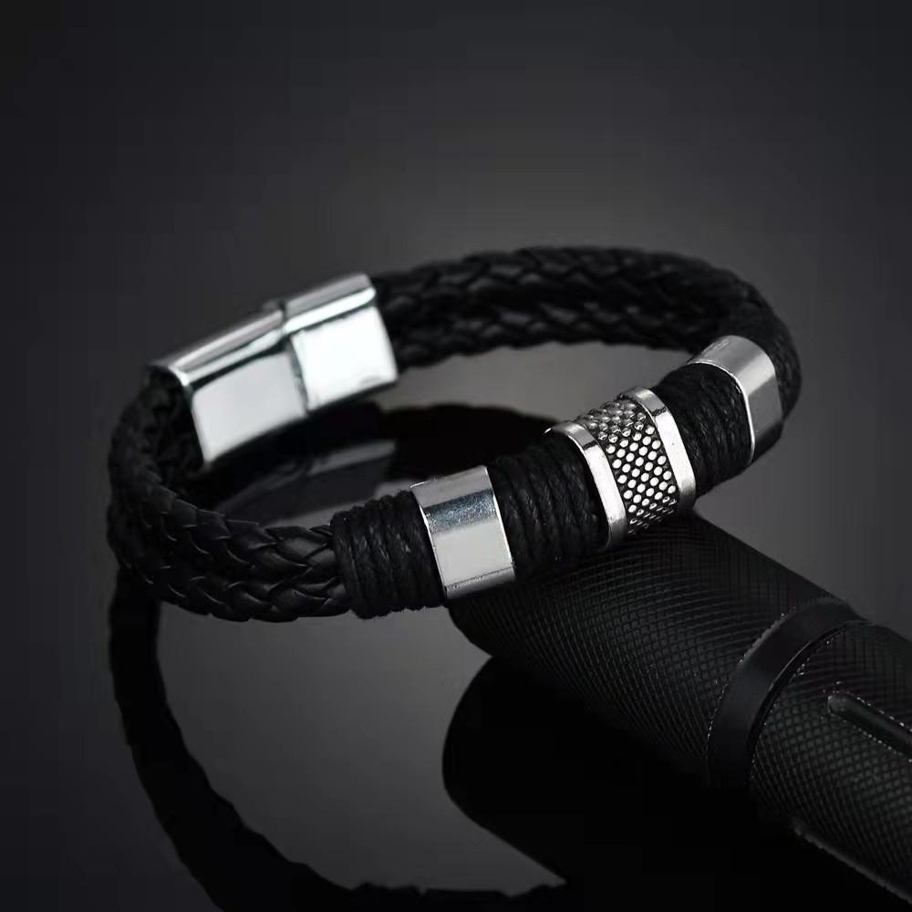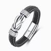 Pulsera de cuero con hebilla magnética y cuerda tejida a mano multicapa para hombre, estilo europeo y americano, gran oferta transfronteriza