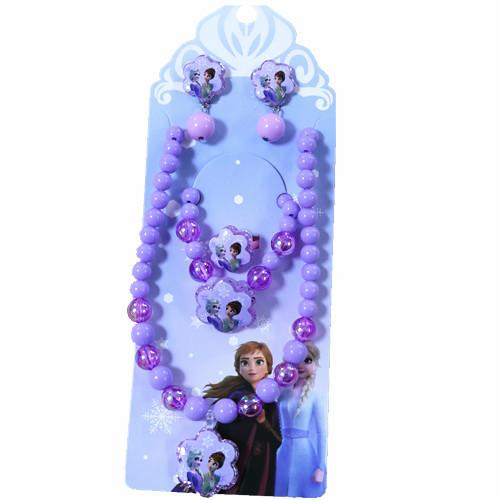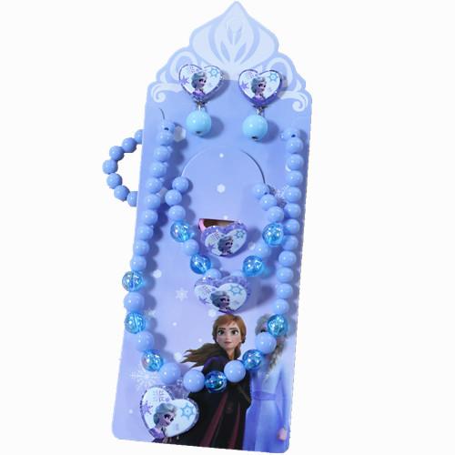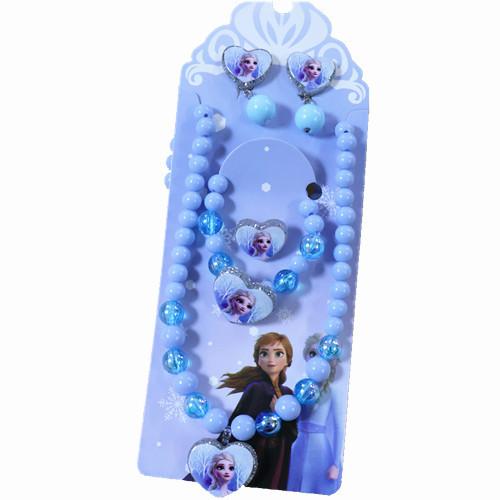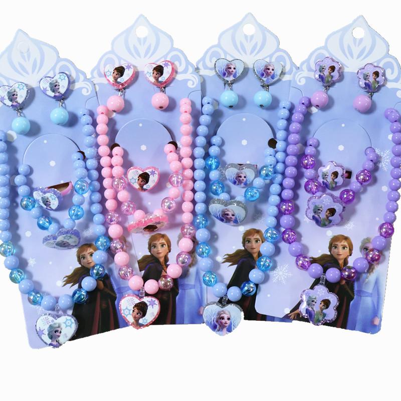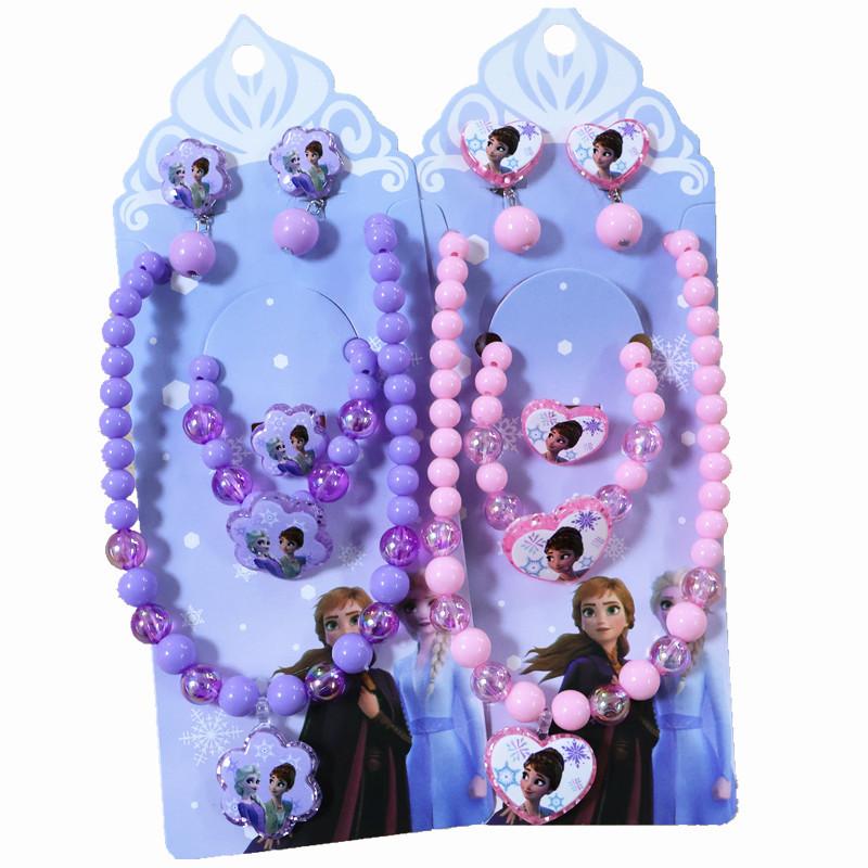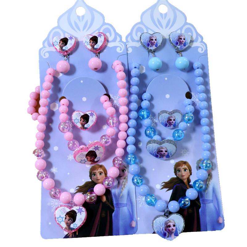 Nuevo conjunto de collar infantil de Frozen con cuentas y clip para las orejas de bebé, caja de regalo de joyería de princesa para niña.