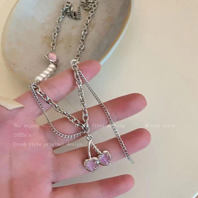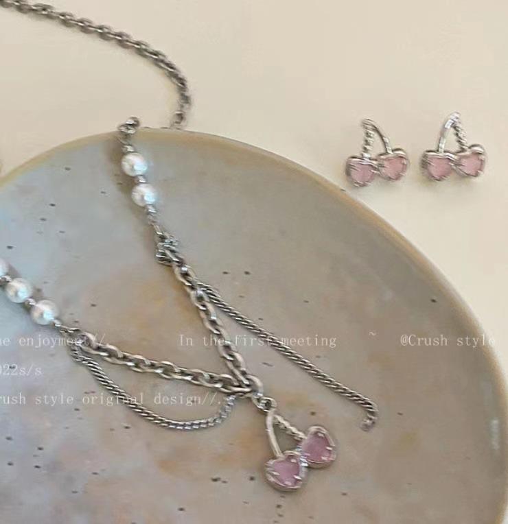 Compra Collar con pespuntes de metal y perlas de Cherry Girl, estilo veraniego, dulce y moderno, con pendientes de estilo chic, cadena de clavícula de lujo y estilo nicho. al por mayor en Joom.pro