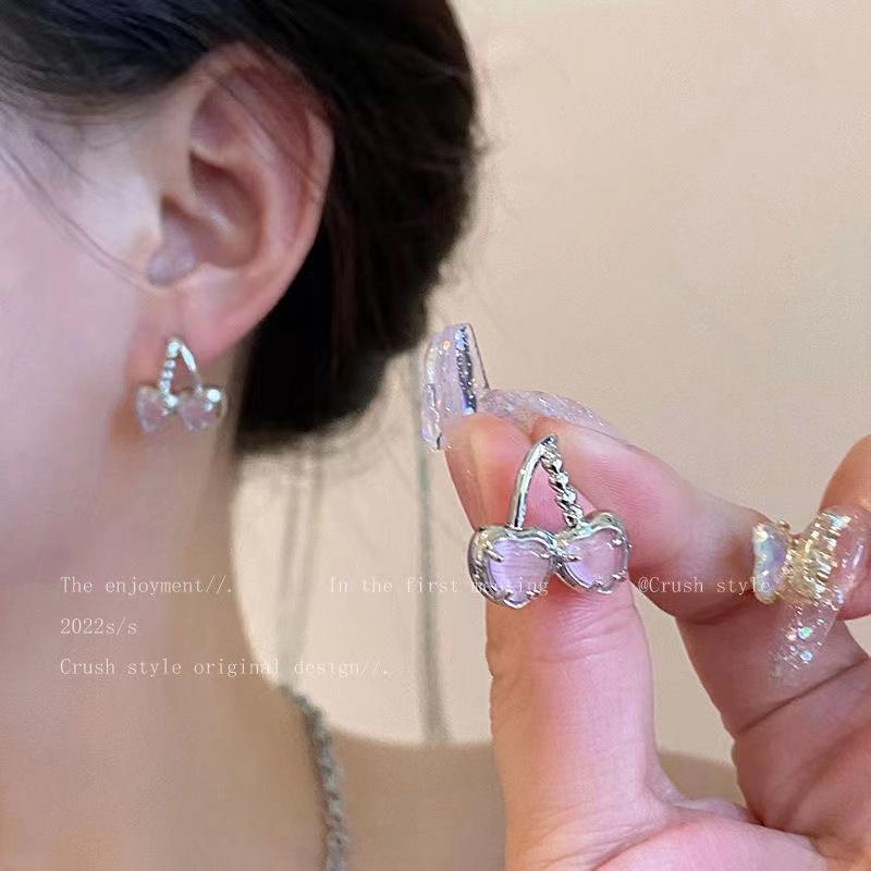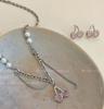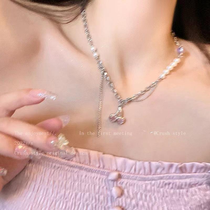 Collar con pespuntes de metal y perlas de Cherry Girl, estilo veraniego, dulce y moderno, con pendientes de estilo chic, cadena de clavícula de lujo y estilo nicho.