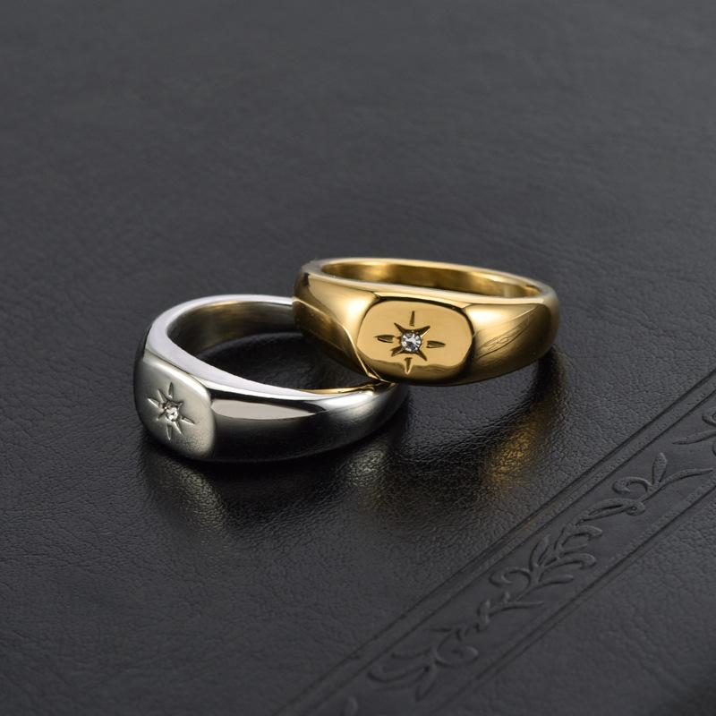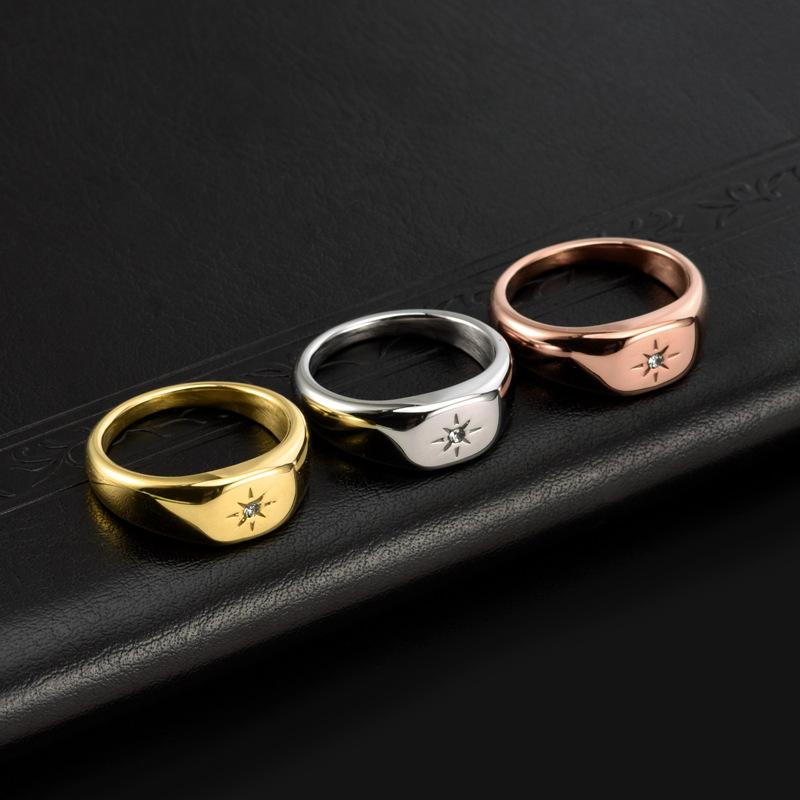 Anillo de compromiso de acero y titanio con incrustaciones de circonita minimalista, estilo europeo y americano, para mujer, de oro de 18 quilates, personalizado, estilo coreano.
