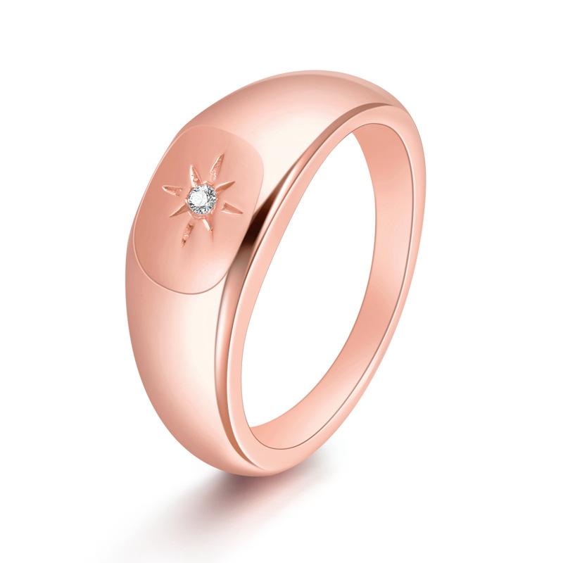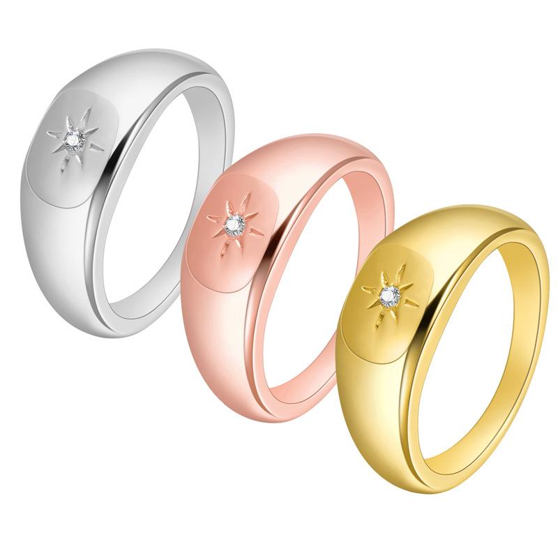 Anillo sencillo de oro de 18K para mujer, de acero de titanio con circonita incrustada, estilo minimalista europeo y americano, versión coreana de anillo de compromiso y boda personalizado