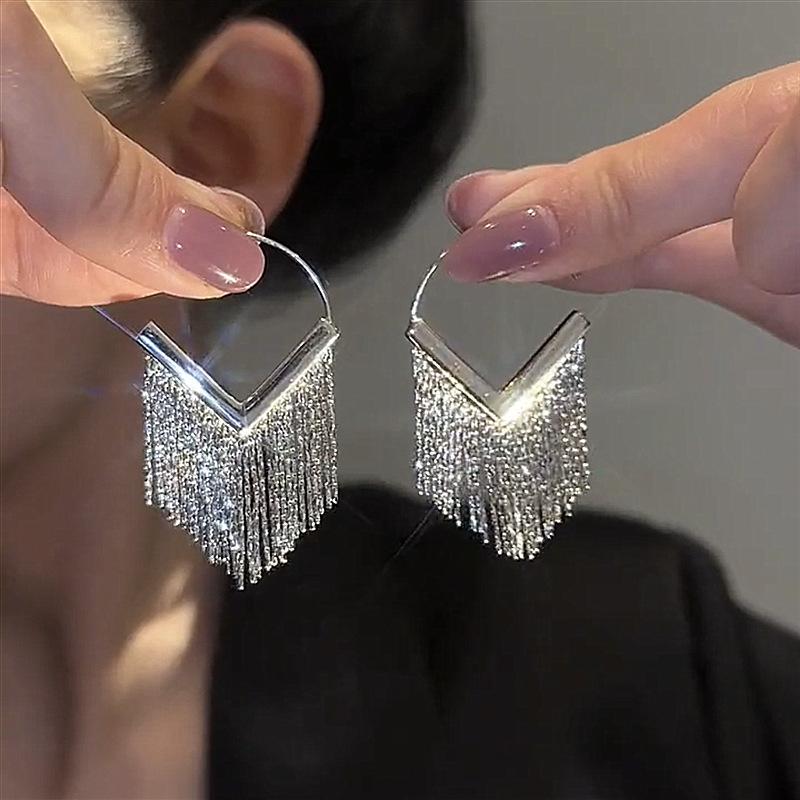 Pendientes de gancho con borlas de diamantes de metal de sentido avanzado para mujer, diseño de nicho simple y elegante, pendientes de celebridades de moda.
