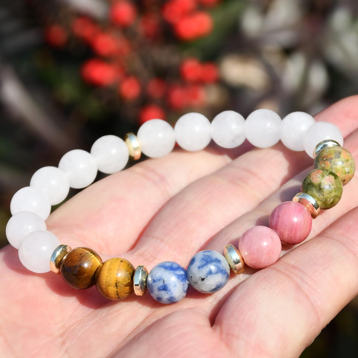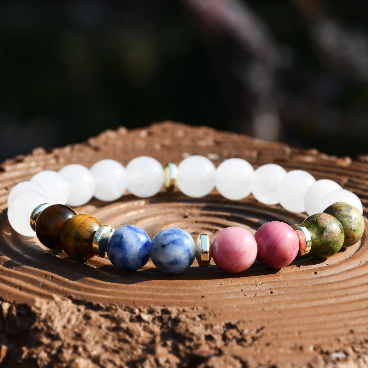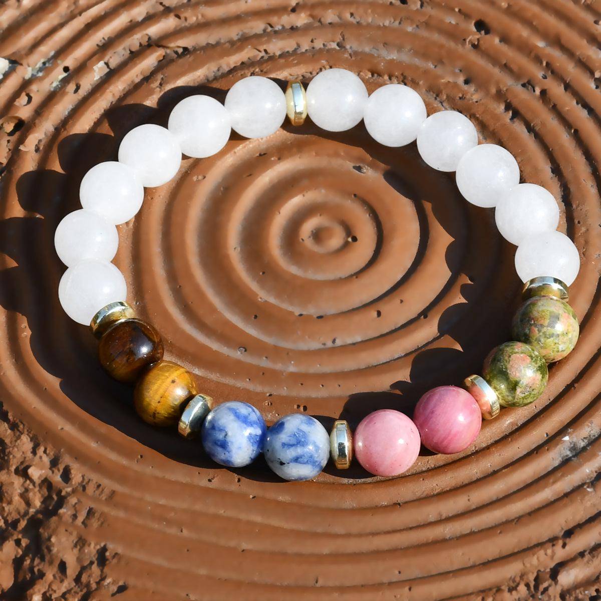 Pulsera de yoga europea y americana de cinco colores piedra ojo de tigre de 8 mm pulsera de jade blanco