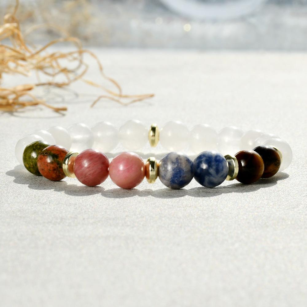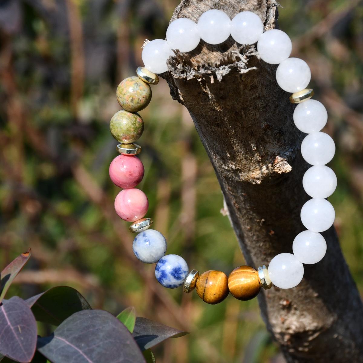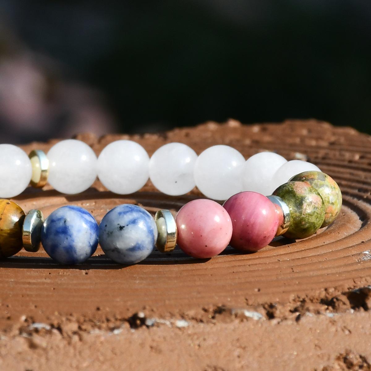 Pulsera de yoga europea y americana de cinco colores piedra ojo de tigre de 8 mm pulsera de jade blanco