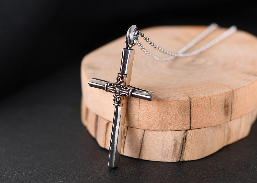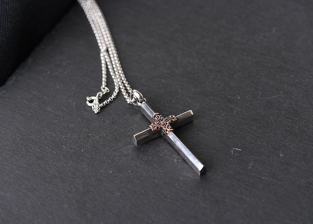 Colgante de plata de ley 925 con diseño de ciervo dorado, estilo tailandés vintage con incrustaciones de cobre, para hombre, venta al por mayor, con cruz brillante de plata