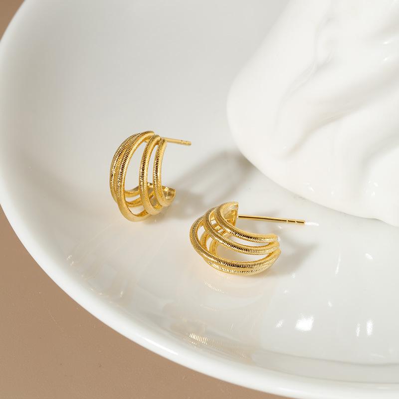 Aretes Plata de Ley 925 Aretes Simples de Hilo Nicho Minimalista Versátil Retro Elegante Joyería Estilo Coreano Ins para Mujer de Alta Gama