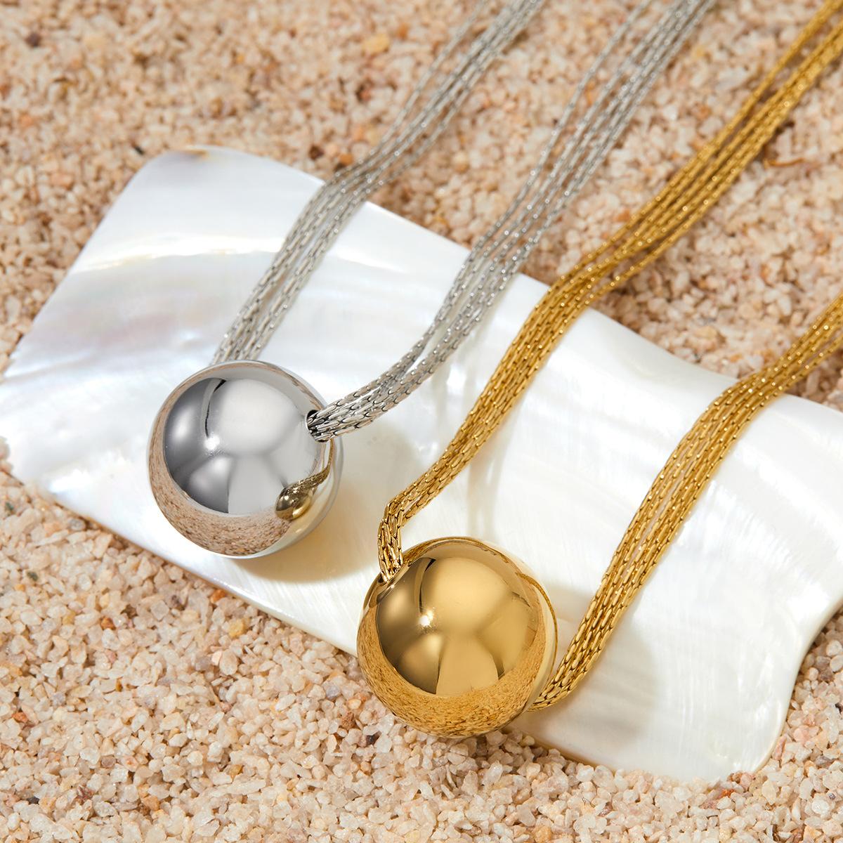 Nuevo collar con colgante de bola hueca de cadena de cinco capas europea y americana, personalidad nicho, moderno, de verano, regalo para el día de la madre