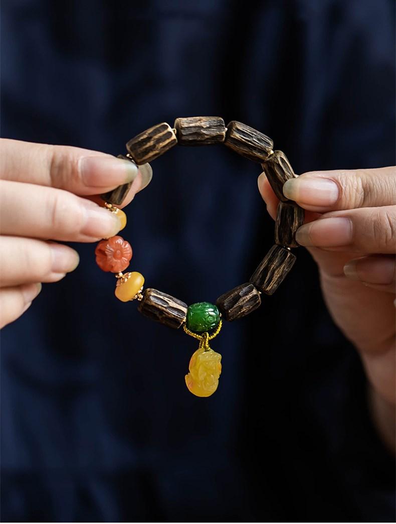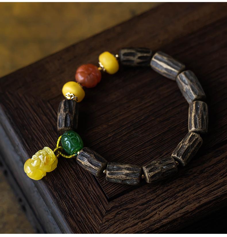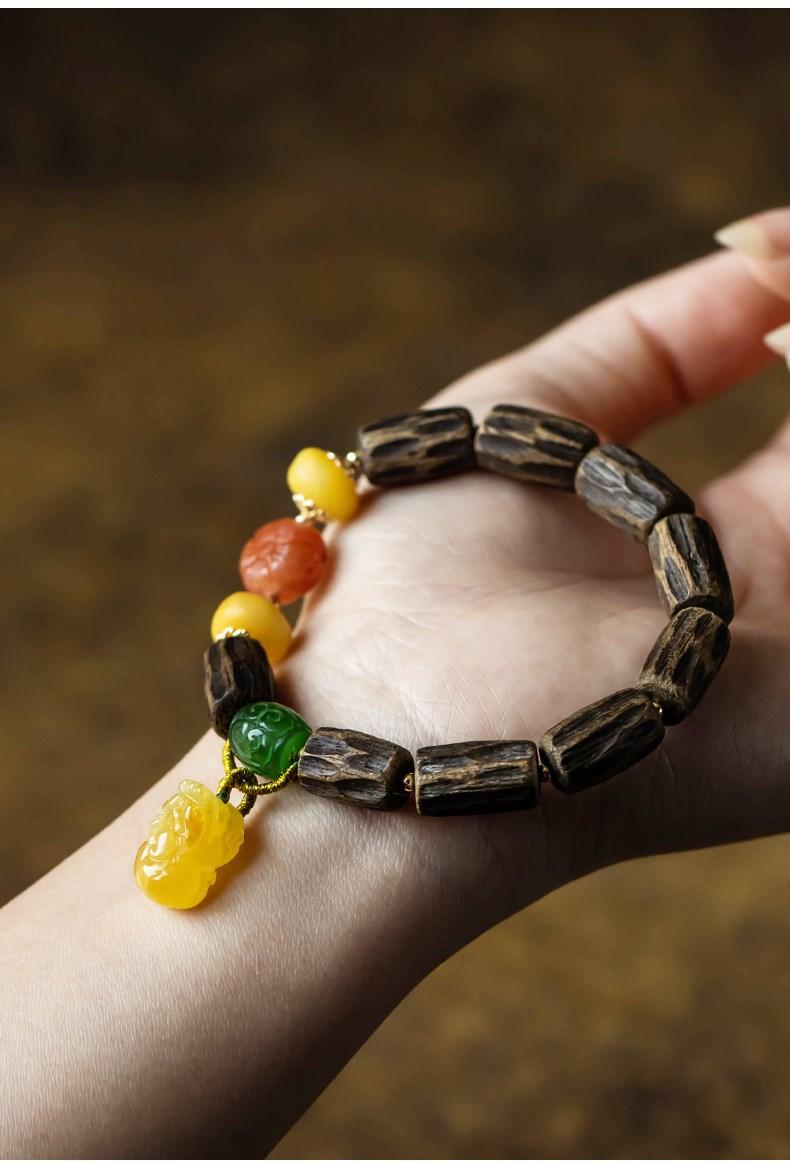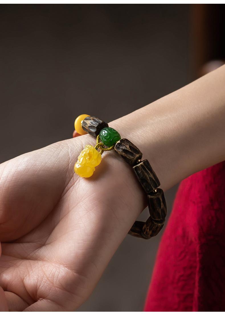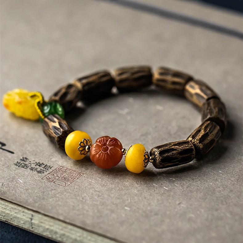 Pulsera de Chen Xiang de una sola vuelta con cuentas de Buda de 9*15 mm aproximadamente, pulsera de madera para mujer, cera de abeja, valiente, joyería roja del sur