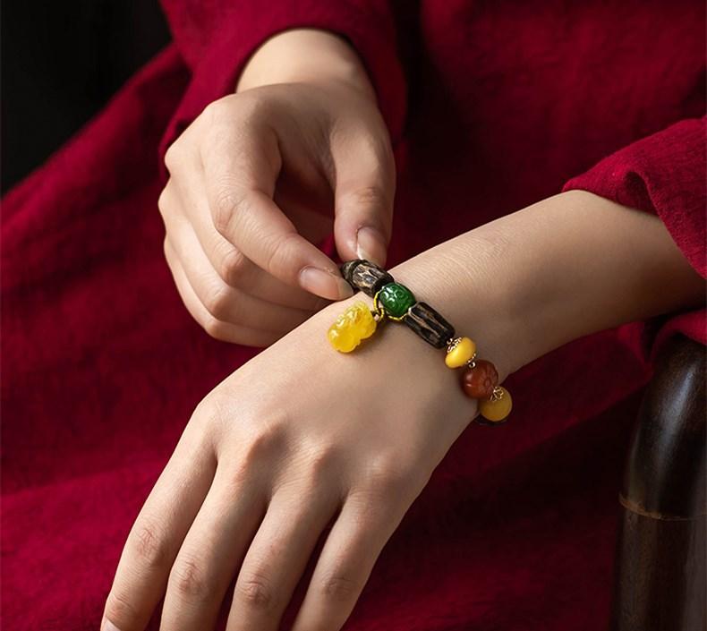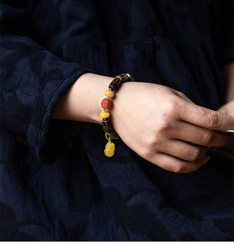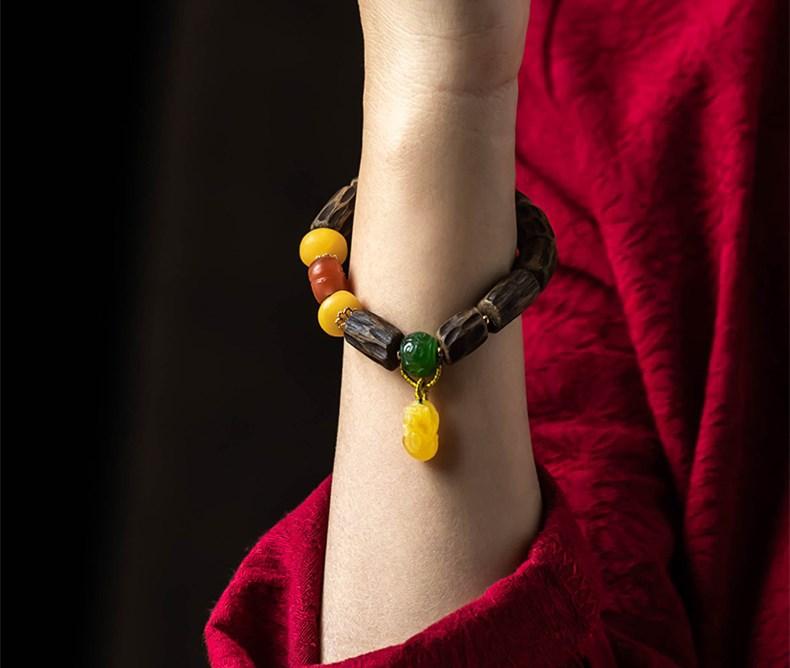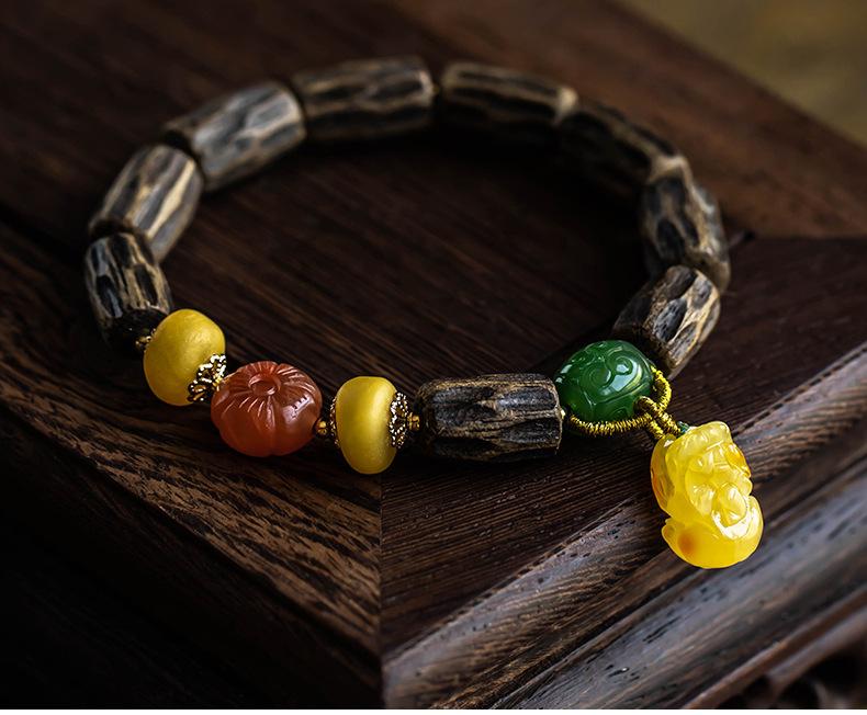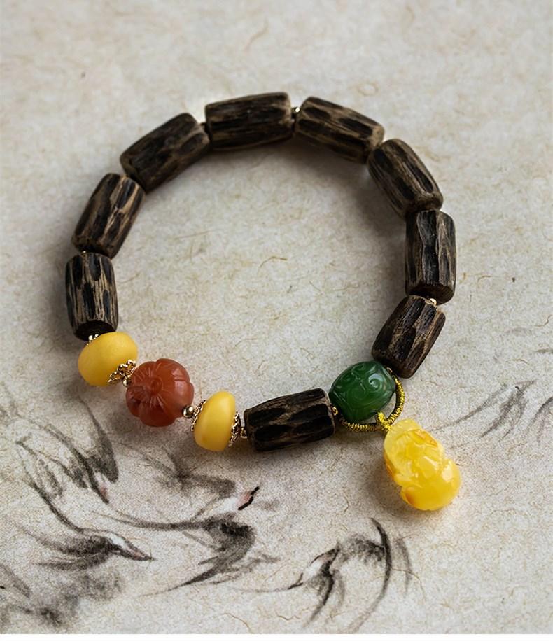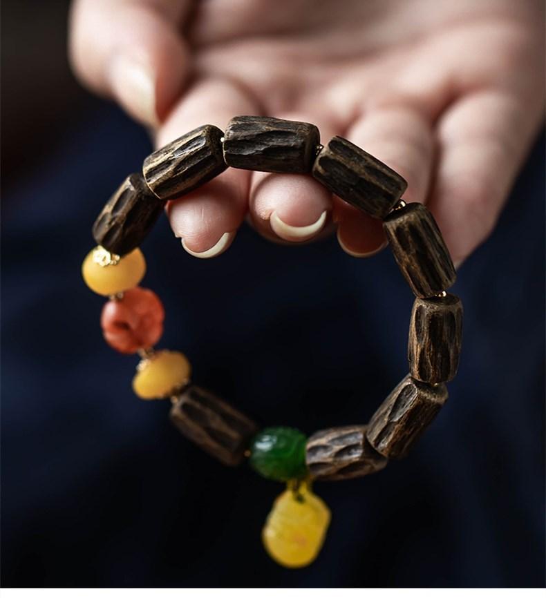 Pulsera de Chen Xiang de una sola vuelta con cuentas de Buda de 9*15 mm aproximadamente, pulsera de madera para mujer, cera de abeja, valiente, joyería roja del sur