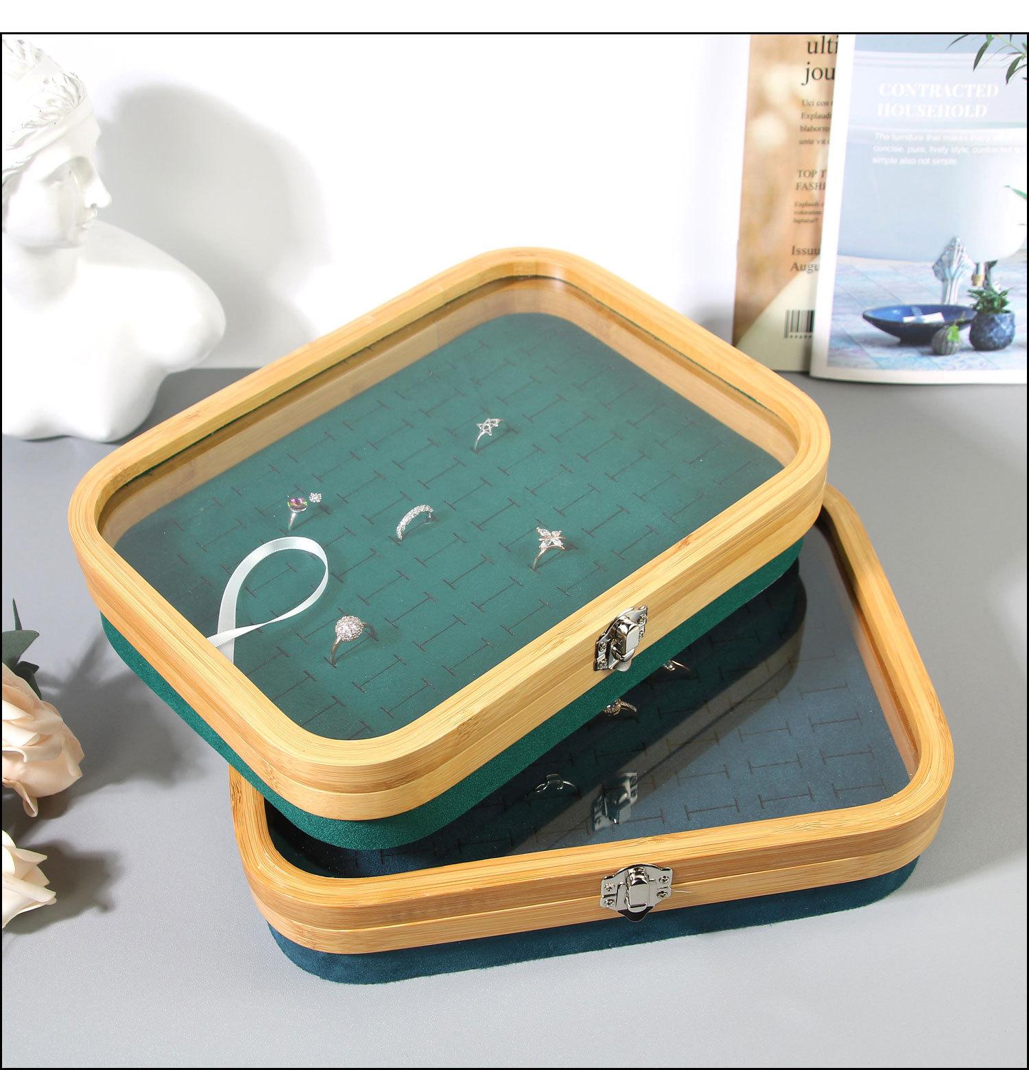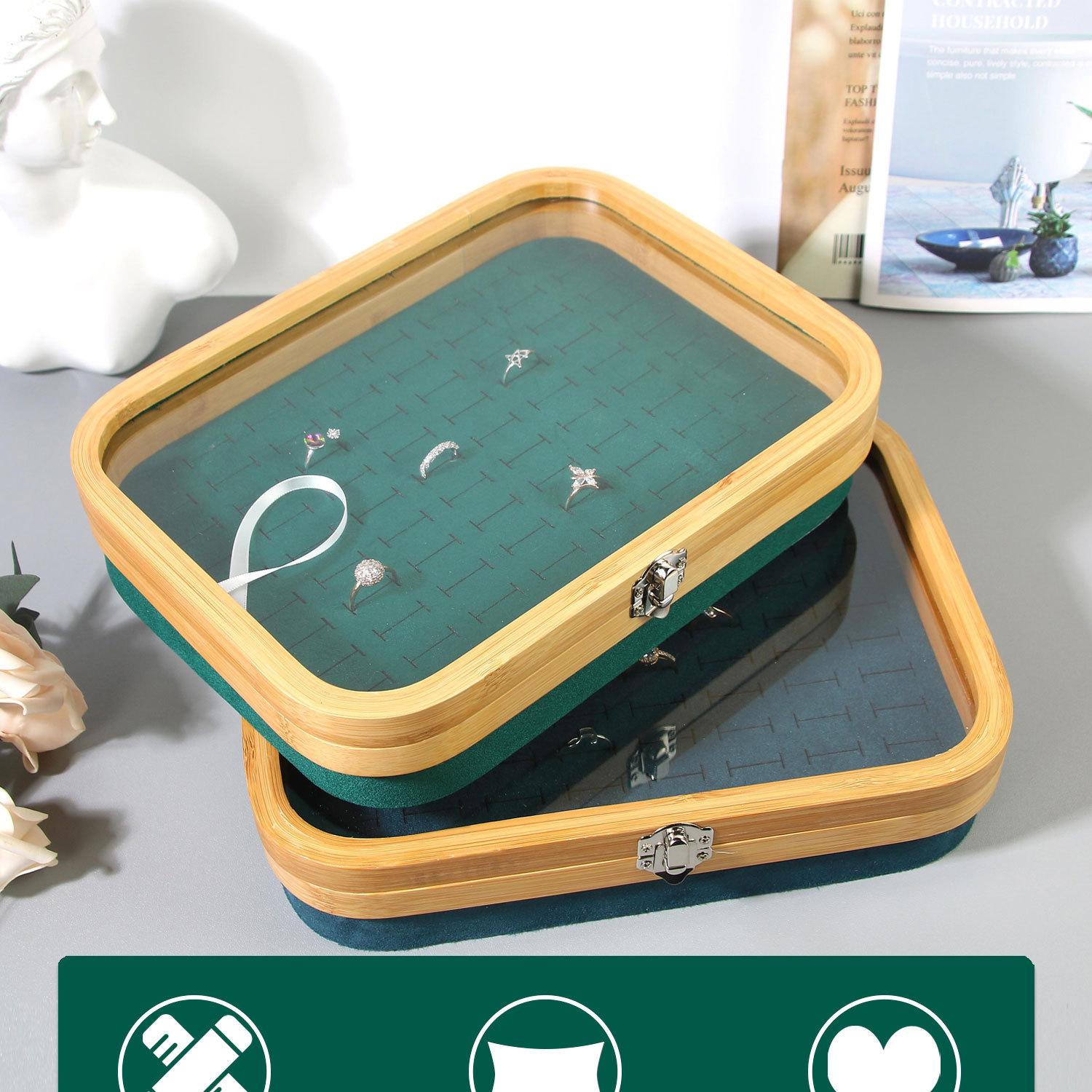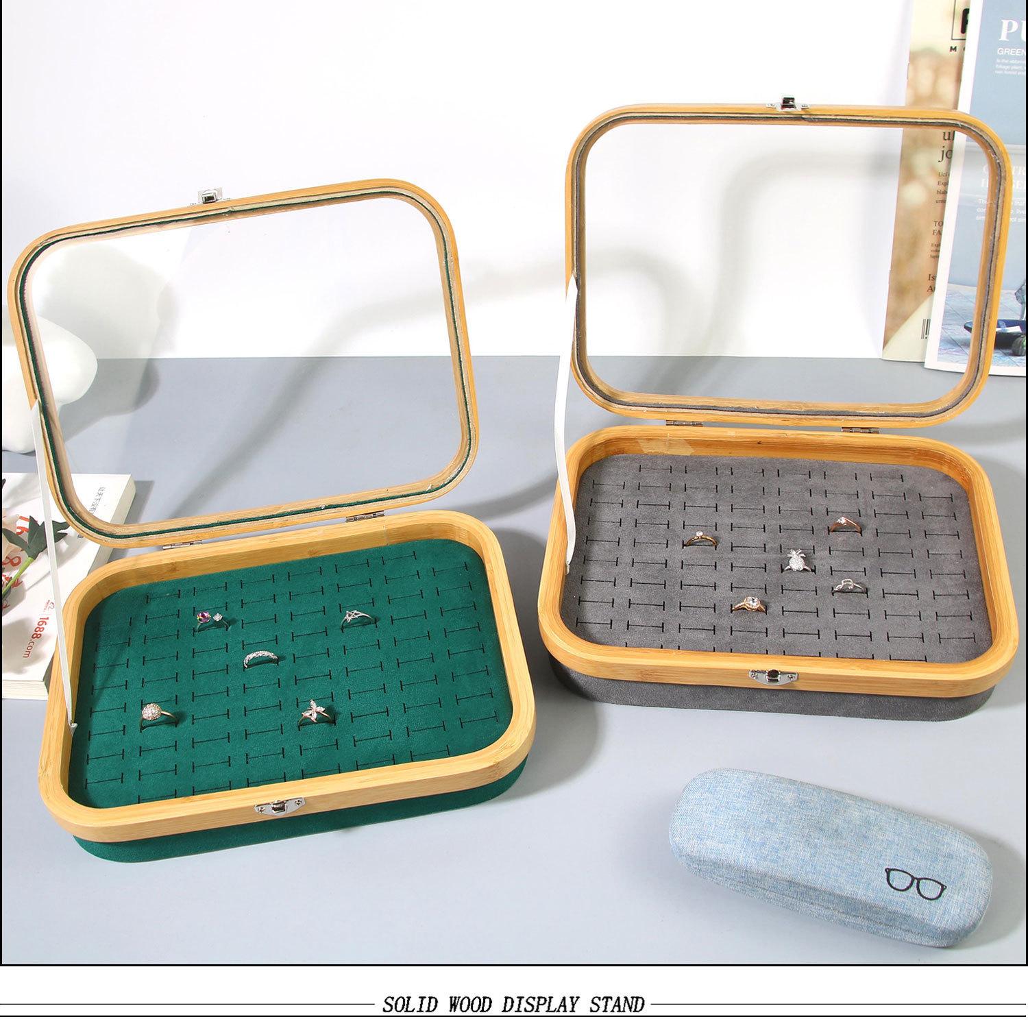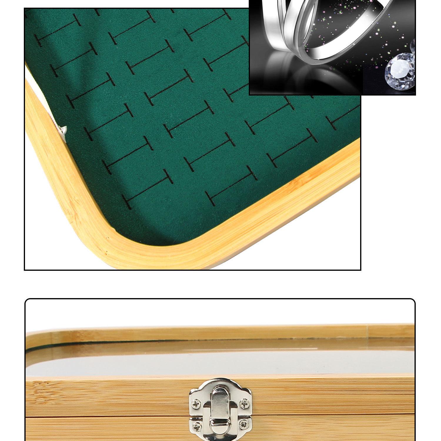 Joyero de bambú y madera para anillos y pendientes con tapa, expositor para escaparate de joyería, estudio de fotografía en casa, accesorios de exhibición