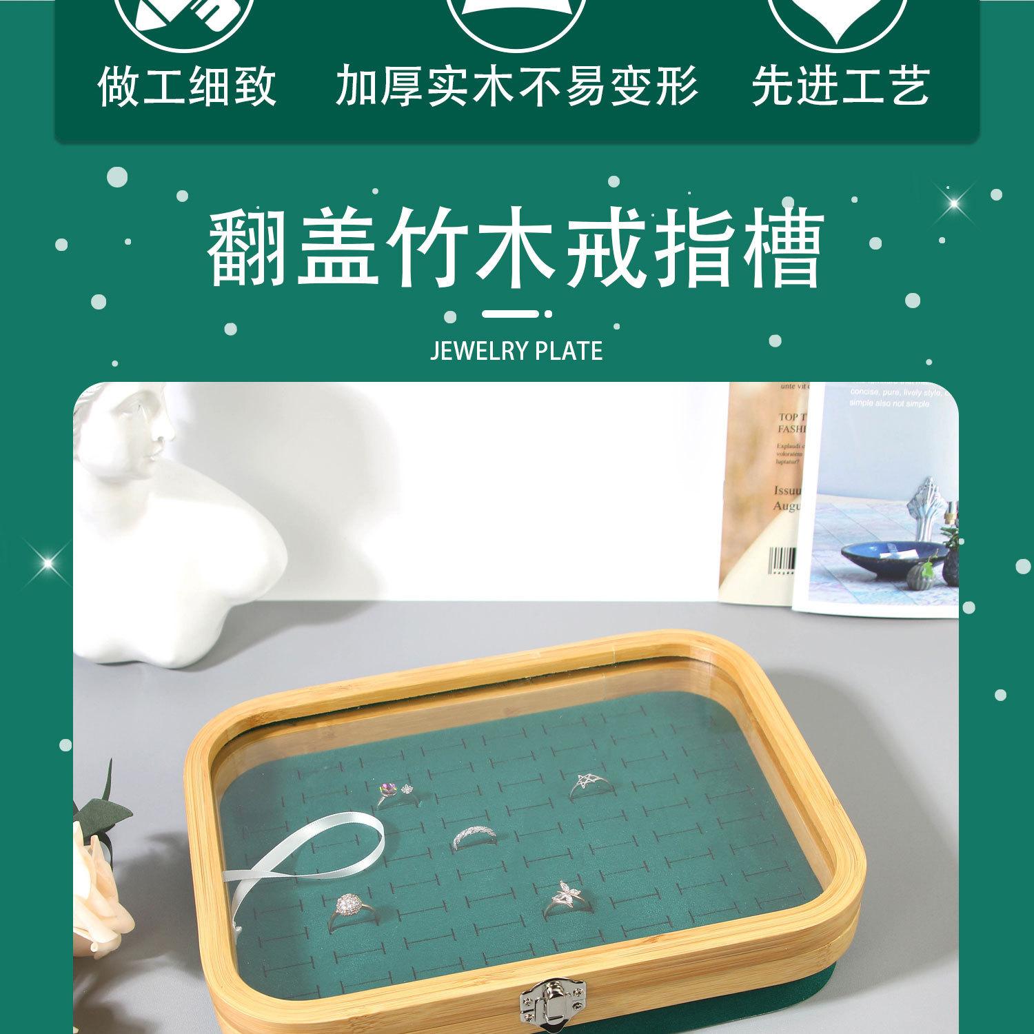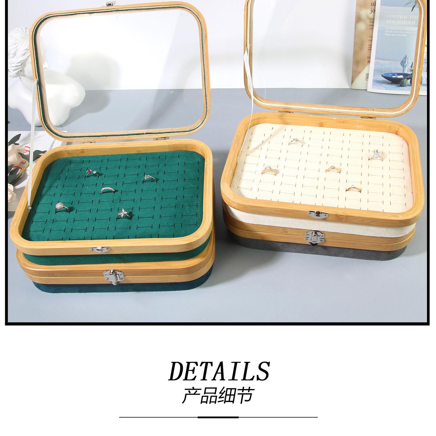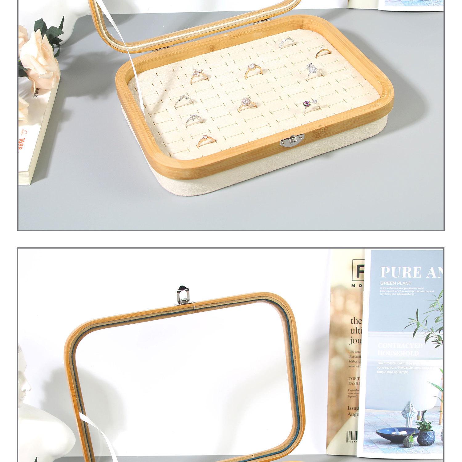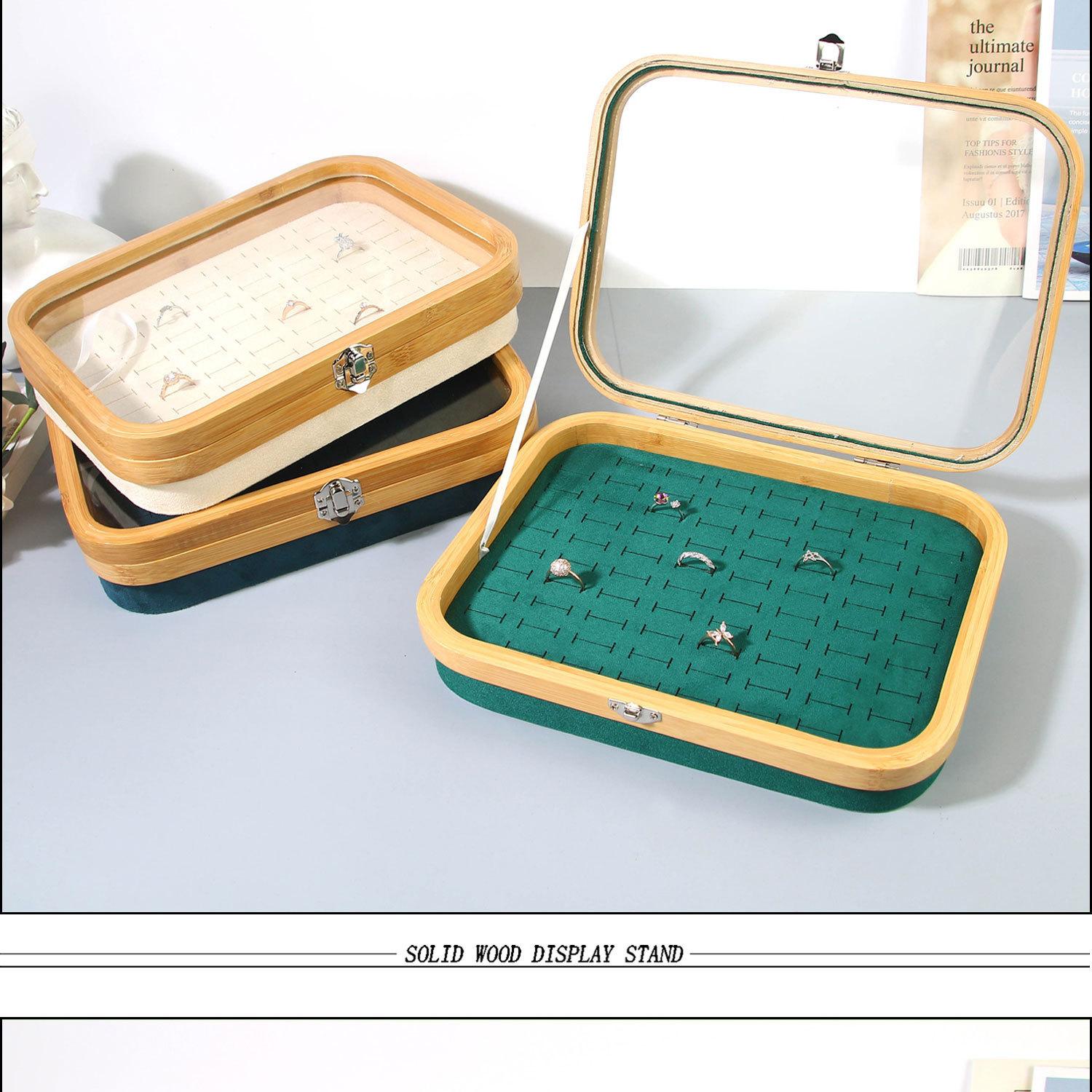 Joyero de bambú y madera para anillos y pendientes con tapa, expositor para escaparate de joyería, estudio de fotografía en casa, accesorios de exhibición