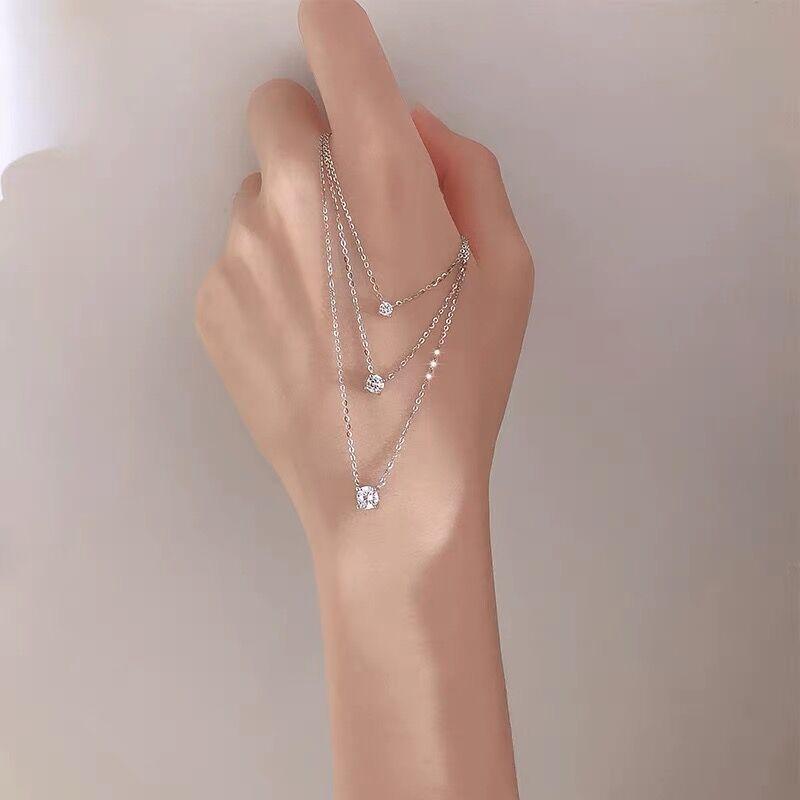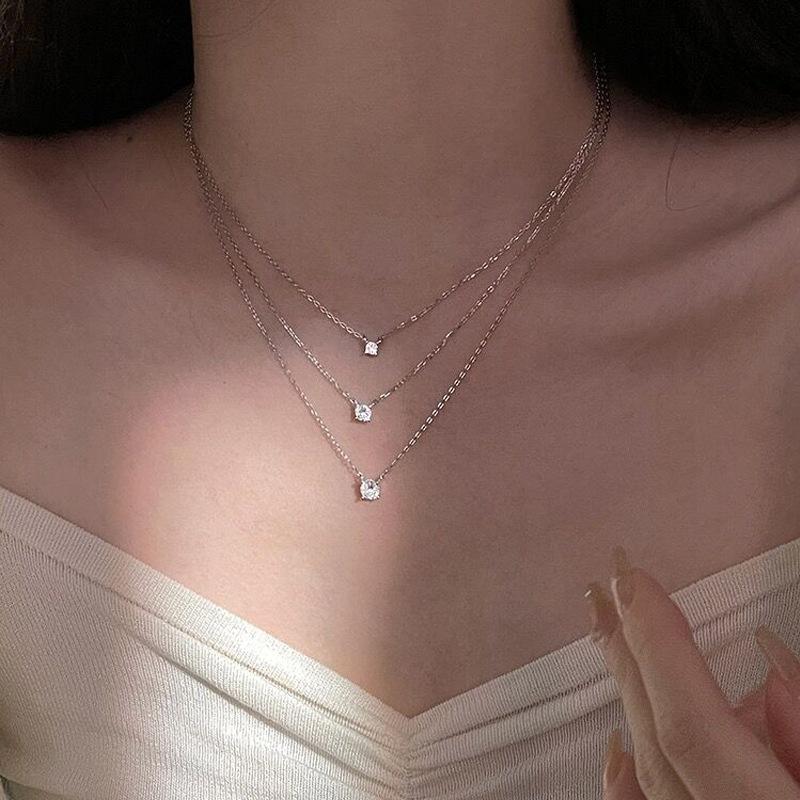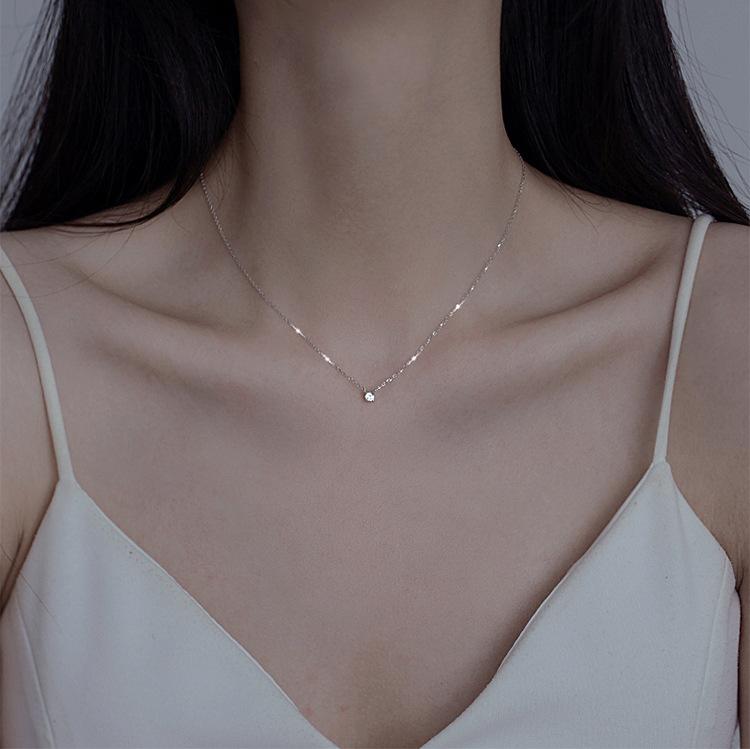 Collar de plata de ley S925 con diamantes pequeños para mujer, diseño de nicho simple, elegante, cadena de clavícula de alta gama, collar ligero de lujo con estilo ins