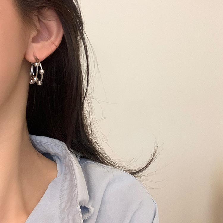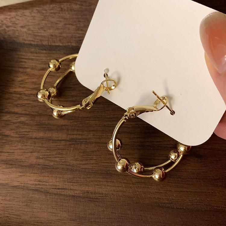 Aretes metálicos de múltiples aros para mujer Diseño nicho de Corea del Sur Retro Personalidad Simple Combinable Elegantes Aretes de moda aretes