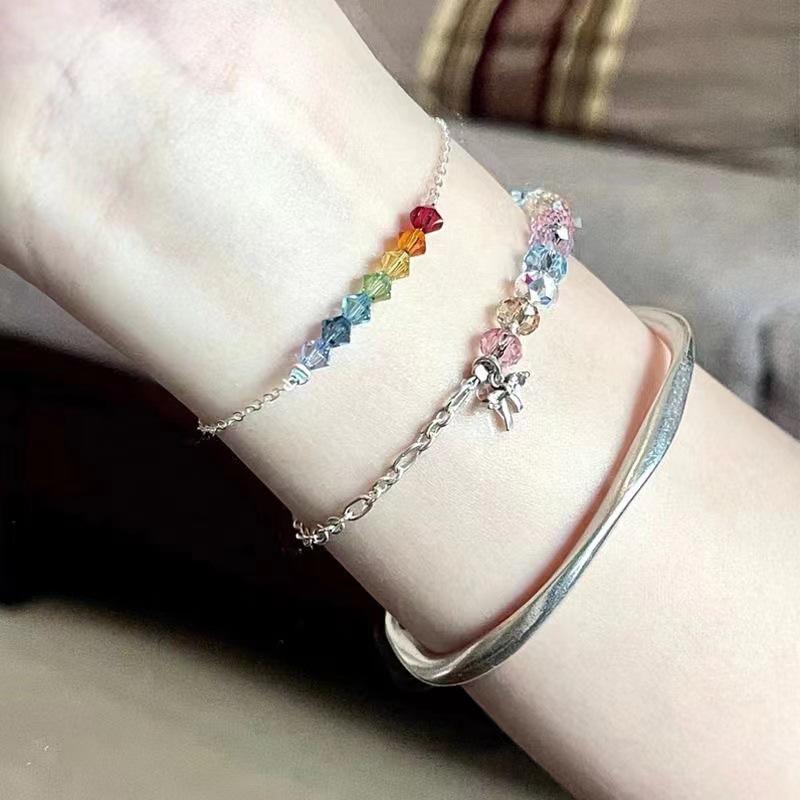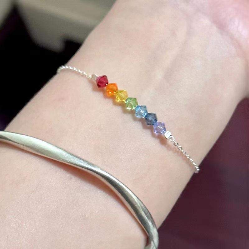 Pulsera arcoíris de estilo fresco para mujer, diseño de nicho, ligera, de lujo, de alta gama, combina con todo, exquisita, de moda, combina con todo.