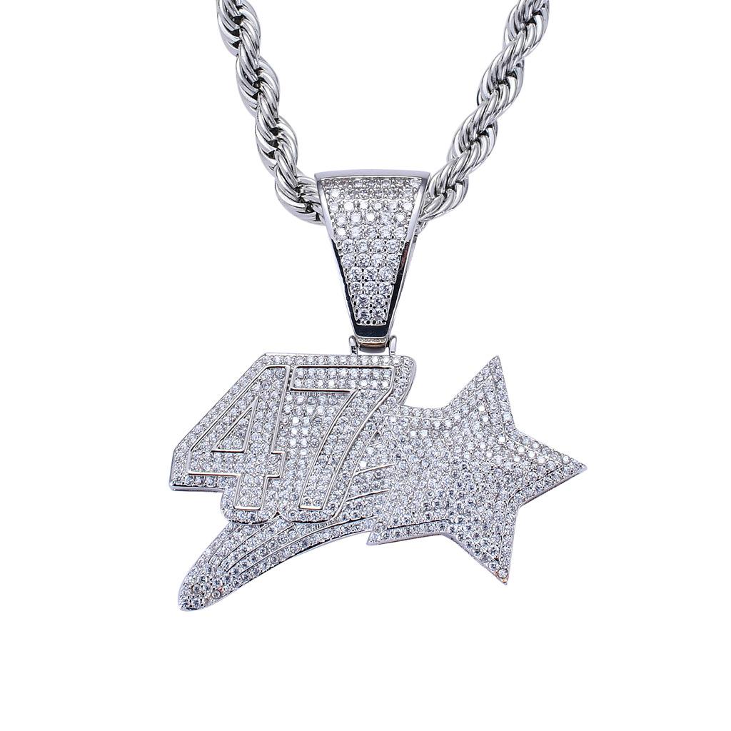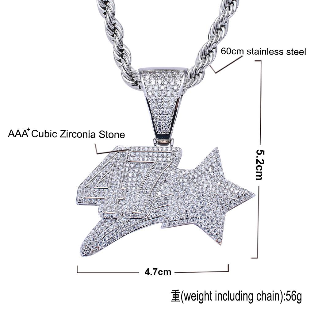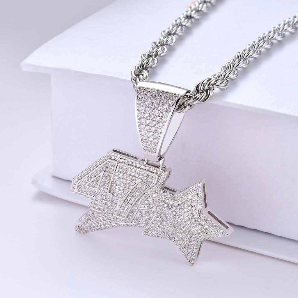 Colgante de hip hop transfronterizo de celebridad de Internet con número creativo 47, colgante de marca militar estrella, collar de hip hop con micro incrustaciones de circonita