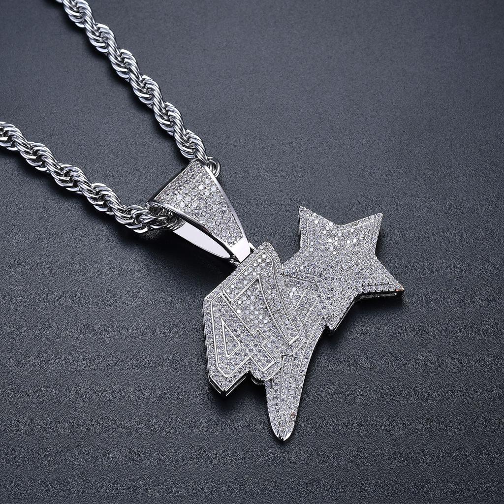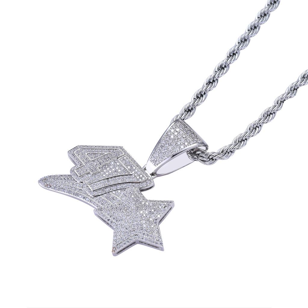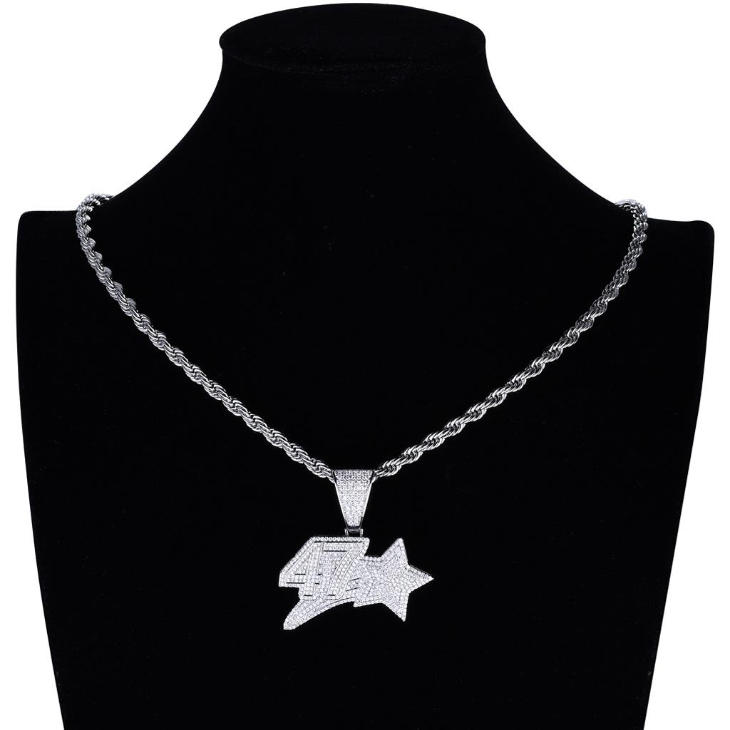 Colgante de hip hop transfronterizo de celebridad de Internet con número creativo 47, colgante de marca militar estrella, collar de hip hop con micro incrustaciones de circonita