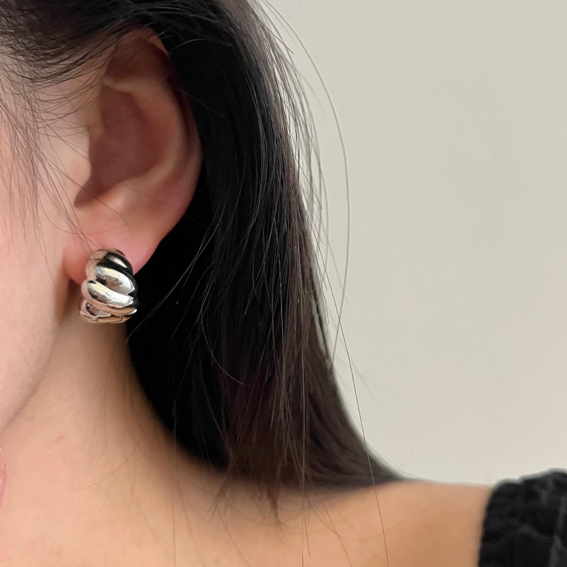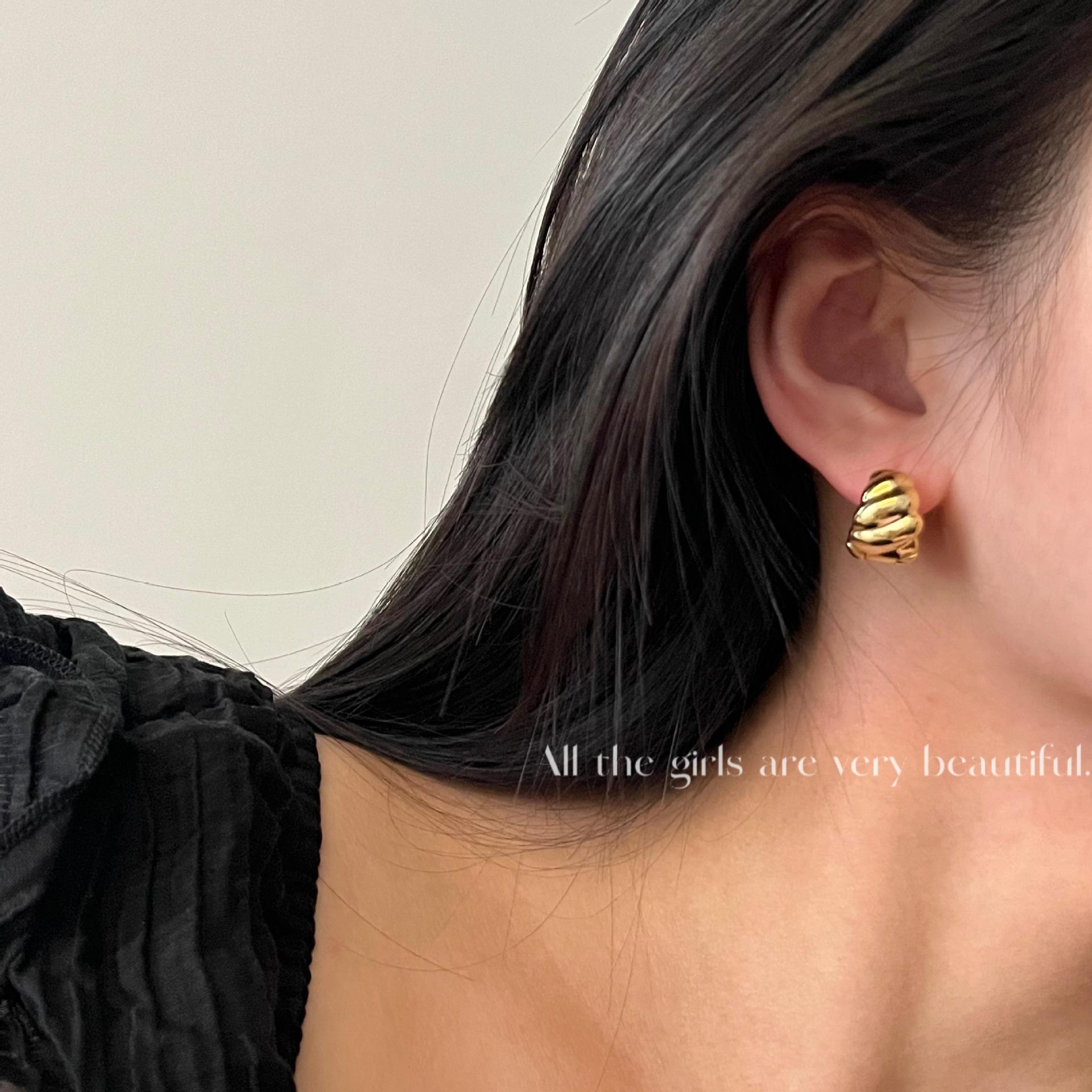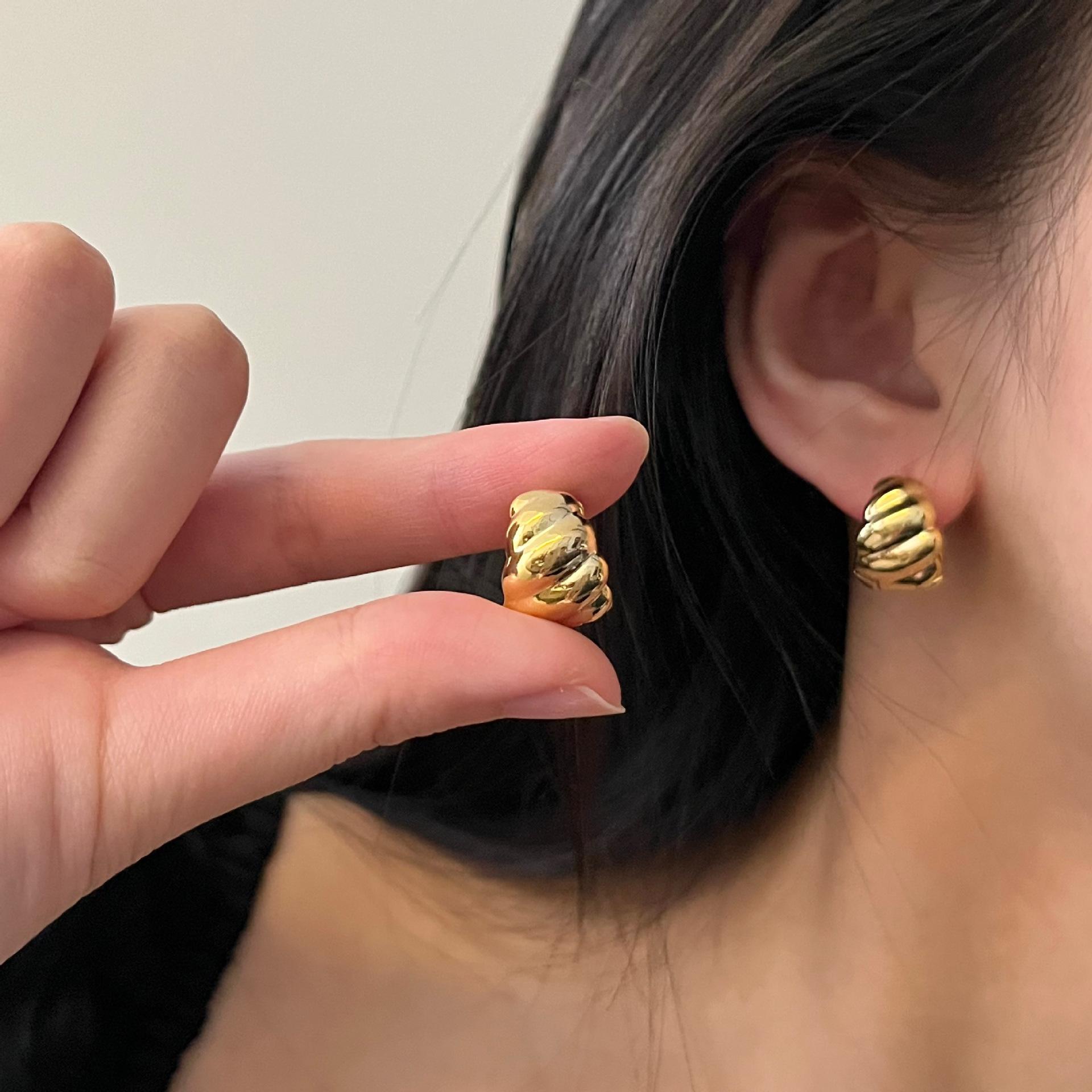 Pendientes de botón con diseño de cuerda torcida estilo retro francés para mujer, de alta calidad, con temperamento nicho, con forma circular y nueva hebilla para la oreja.