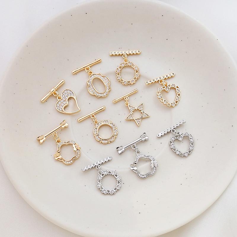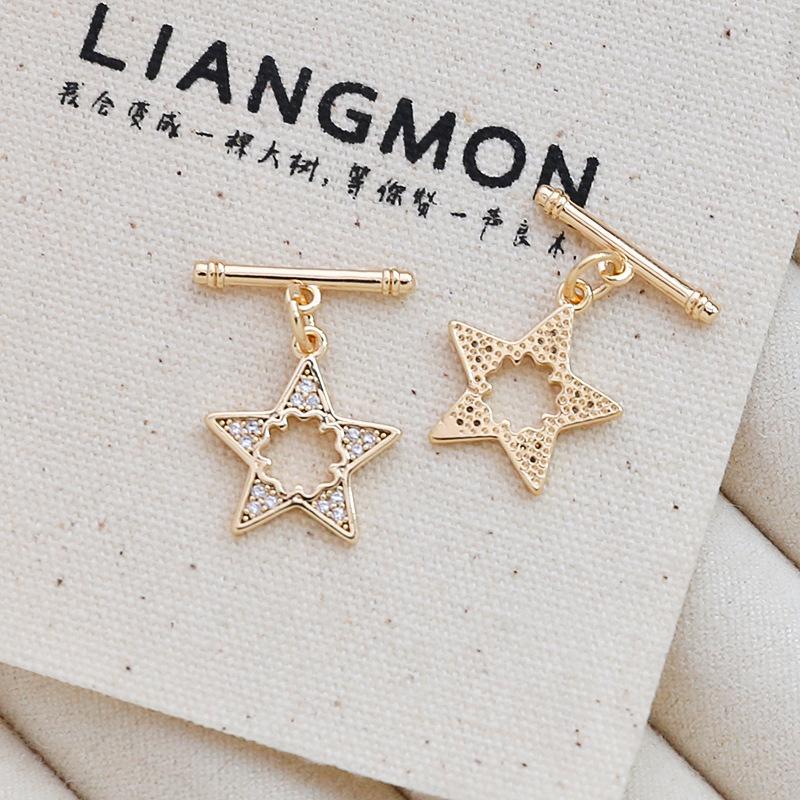 Oro cobre incrustado con circonio retenedor de color amor estrella de cinco puntas hebilla de conexión OT DIY joyería hecha a mano pulsera collar pendientes accesorios