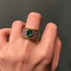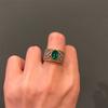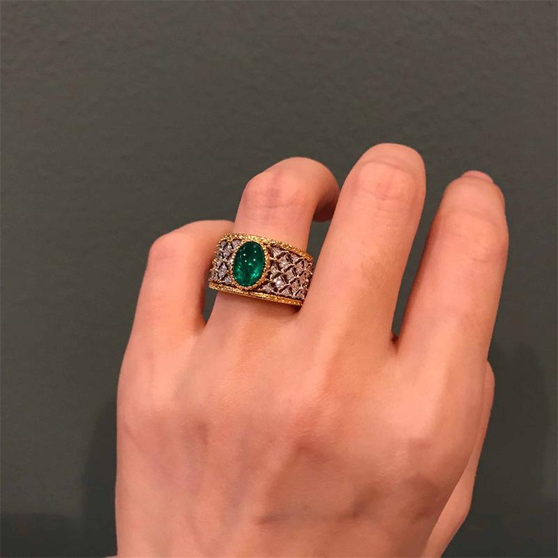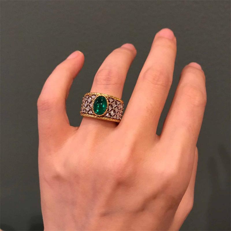 Anillo abierto de alta calidad con corte retro francés de encaje esmeralda y circonita incrustada para mujer, chapado en oro, de moda.