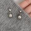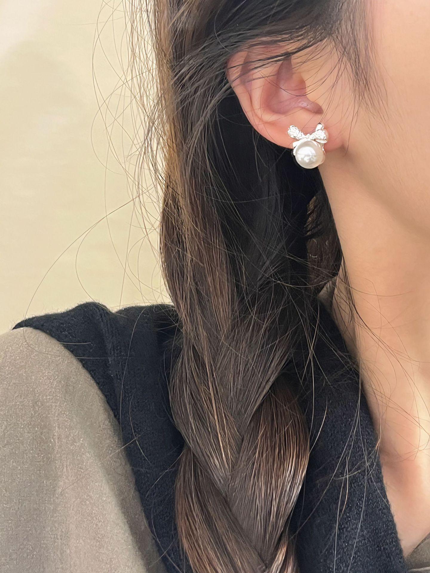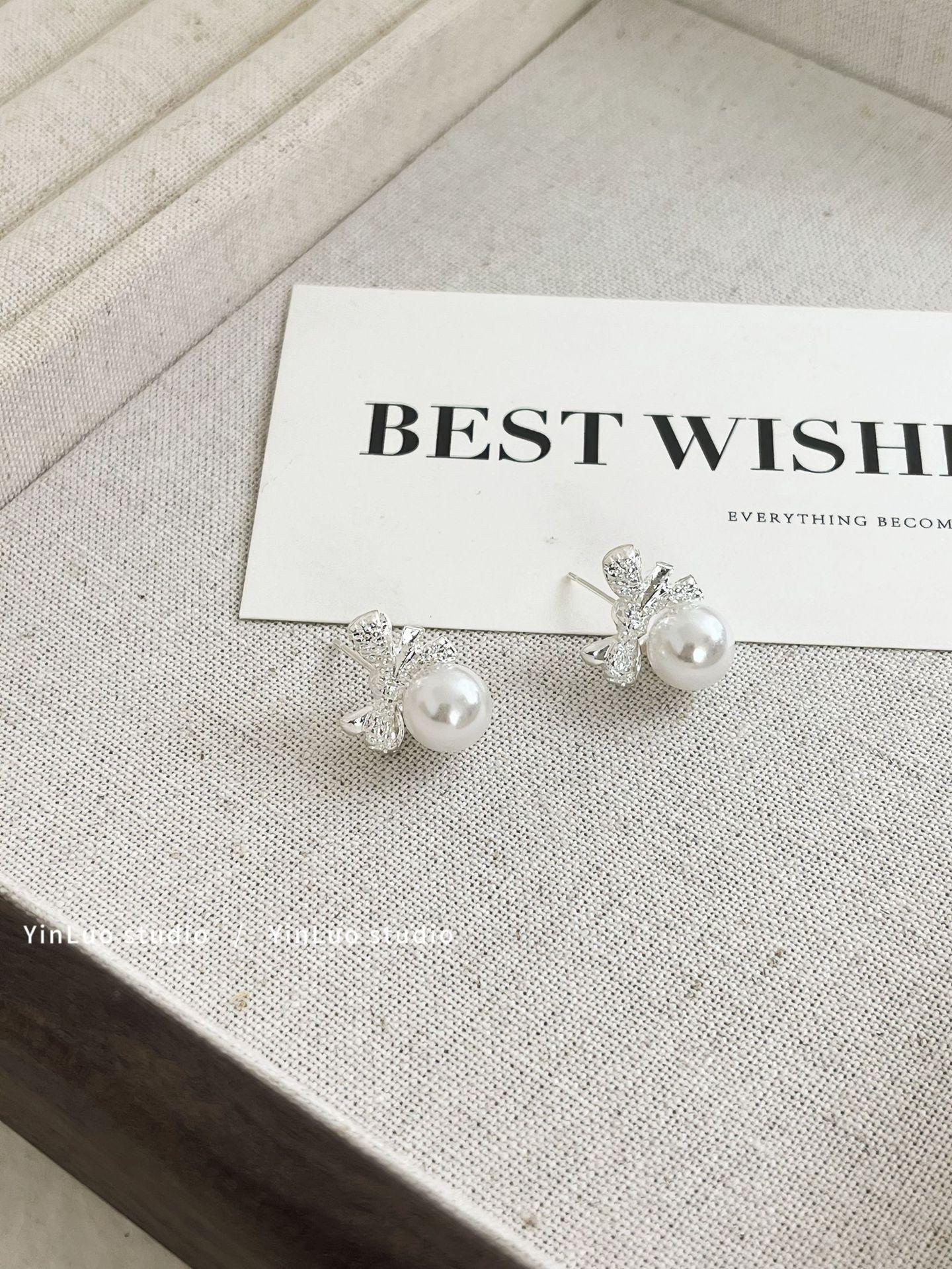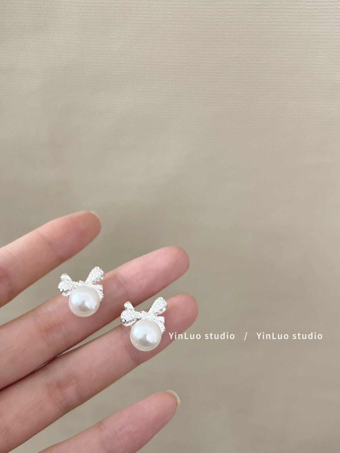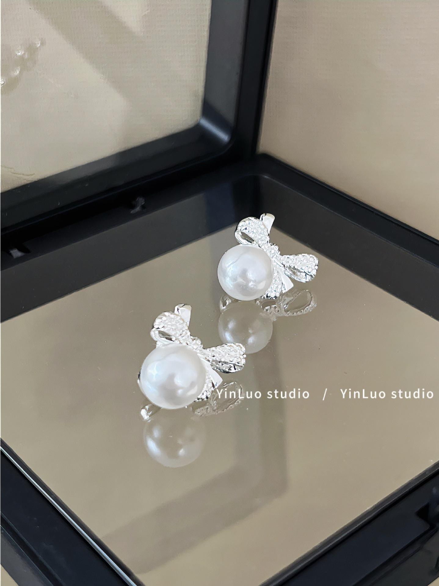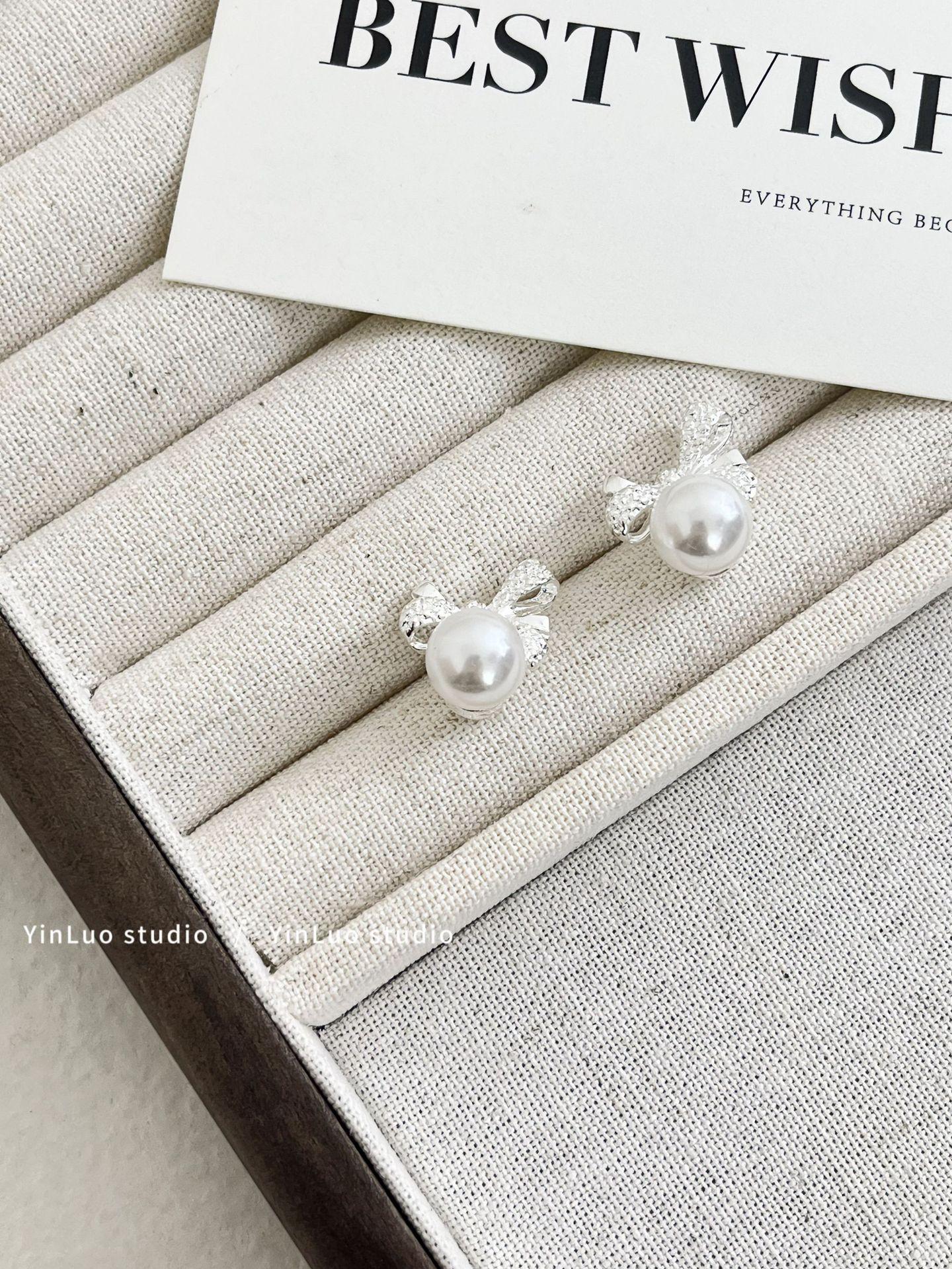 Pendientes de plata s925 con forma de perla y lazo de aguja, con diseño de nicho femenino, pendientes sencillos y versátiles para uso diario.