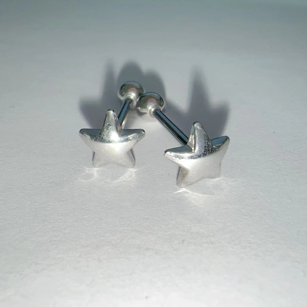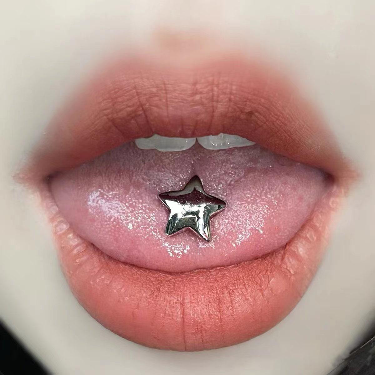 Piercings de Lengua Tridimensionales en Forma de Estrella de Cinco Puntas, Joyería de Piercing Simple de Acero Titanio, Sexys Europeos y Americanos, Dulces y Geniales Venta al Mayoreo Transfronteriza