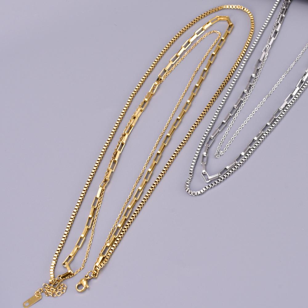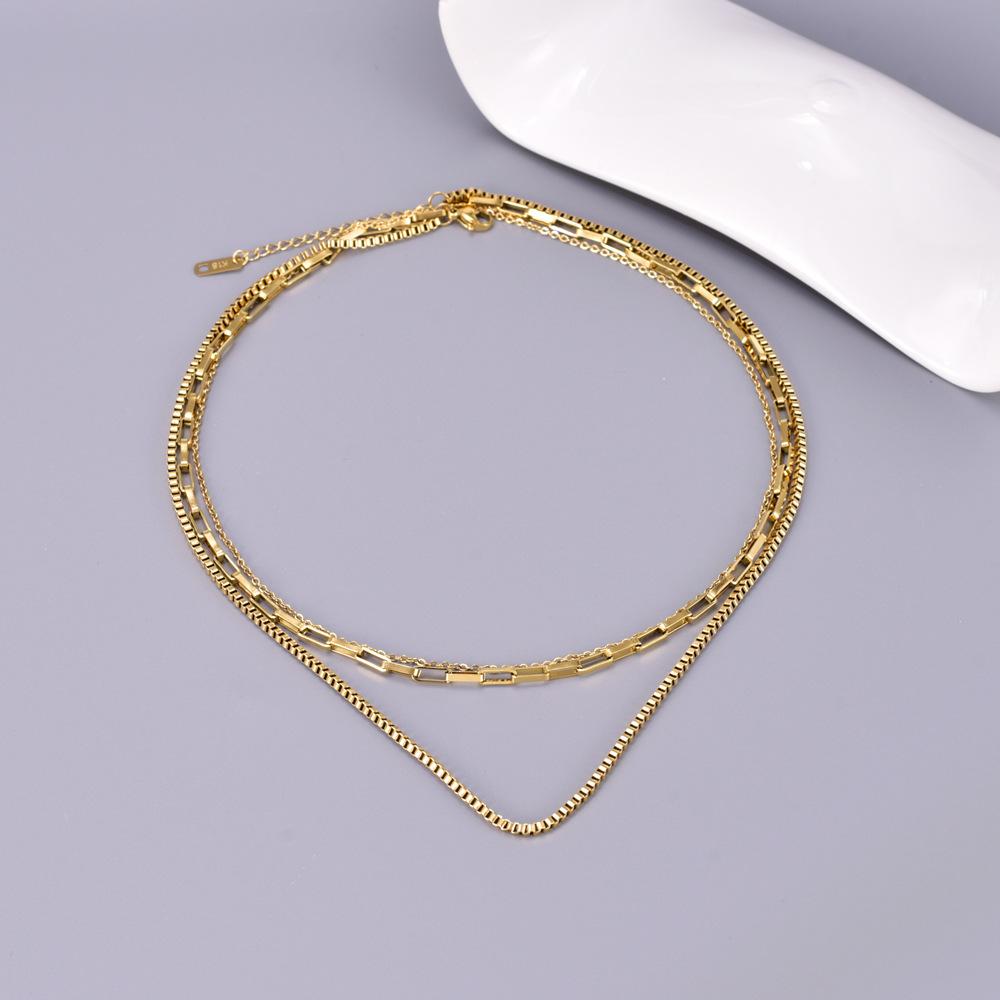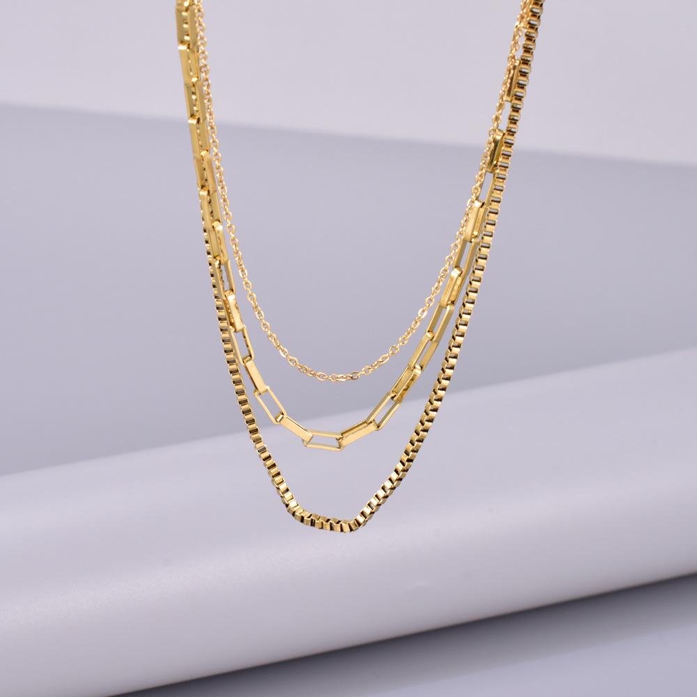 L101 Collar al por mayor de diseño europeo y americano de acero de titanio de tres capas, nuevo estilo para mujer, simple y elegante, cadena para clavícula de oro de 18 quilates