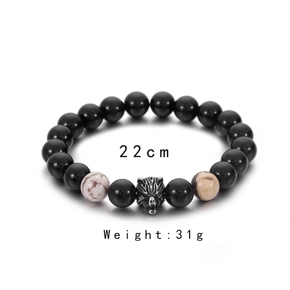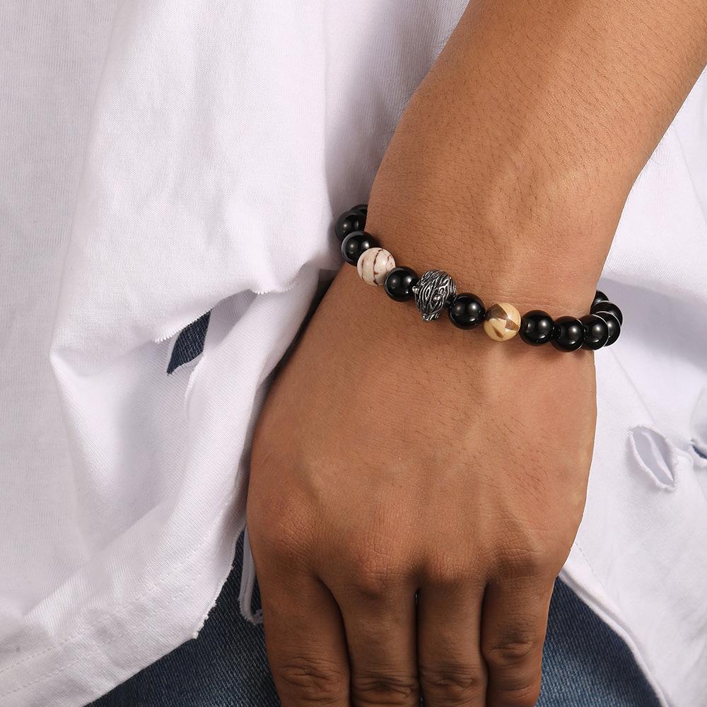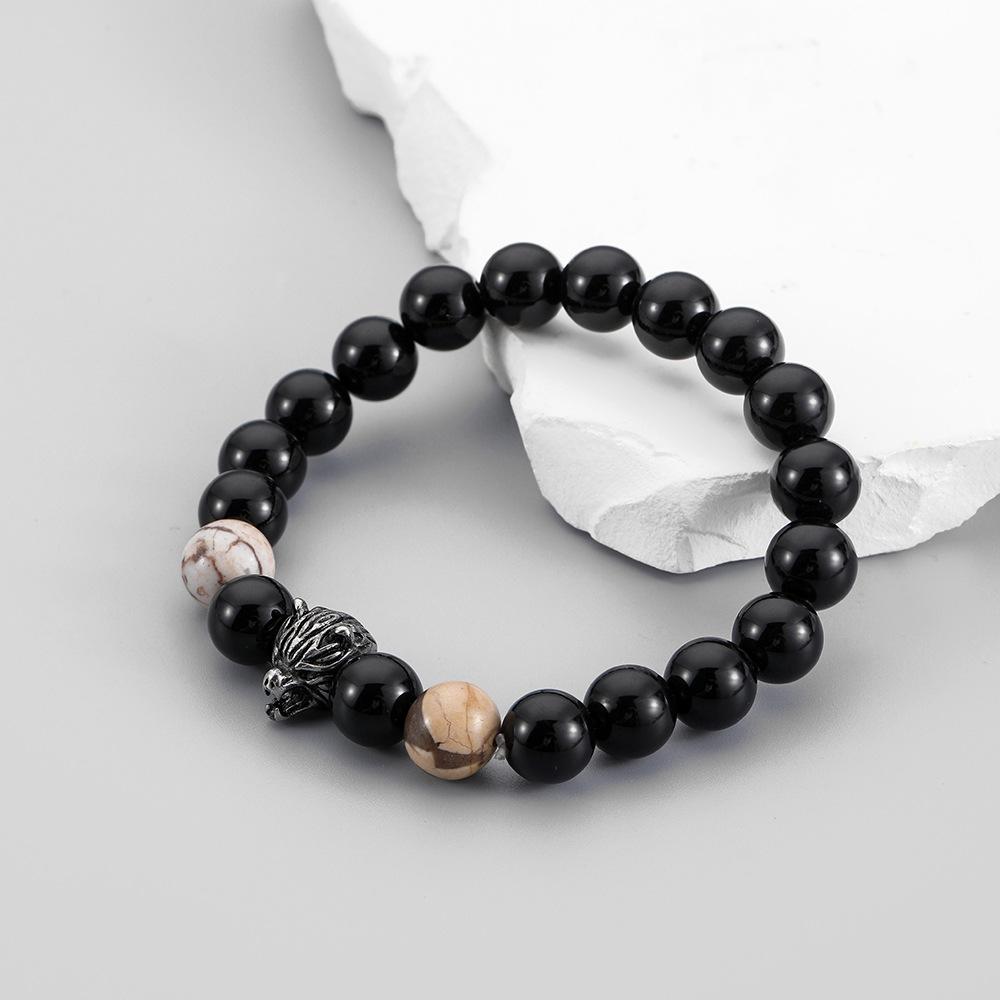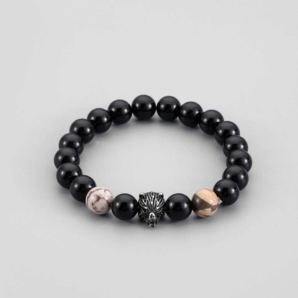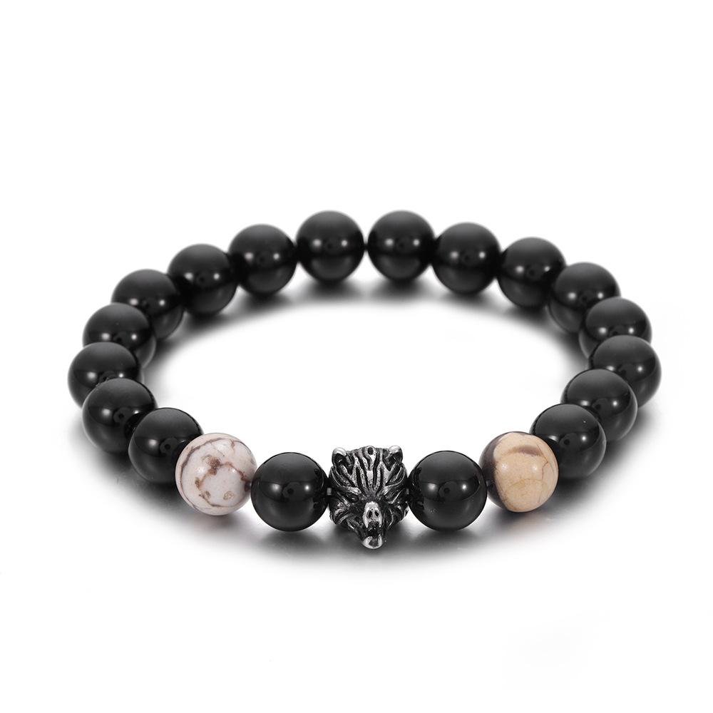 Pulsera de acero inoxidable con cabeza de lobo de piedra y cuentas negras para hombre, nueva y versátil, de Amazon Fashion.