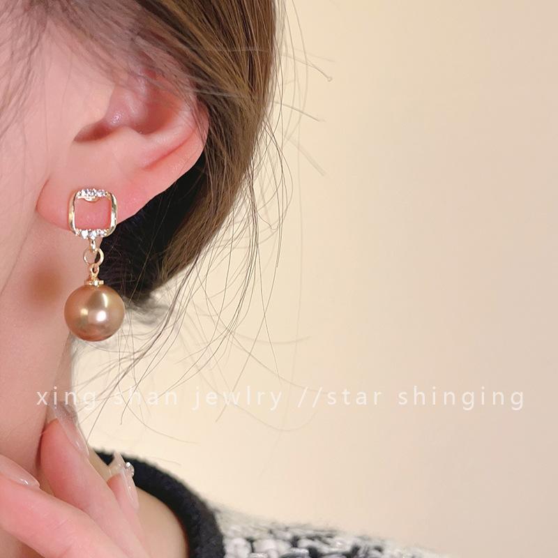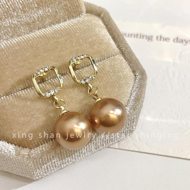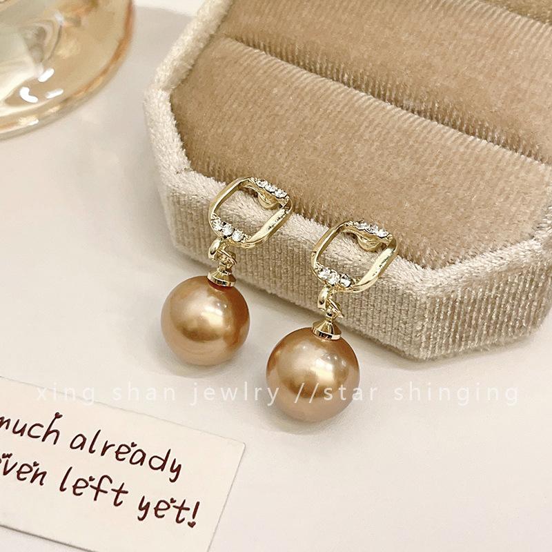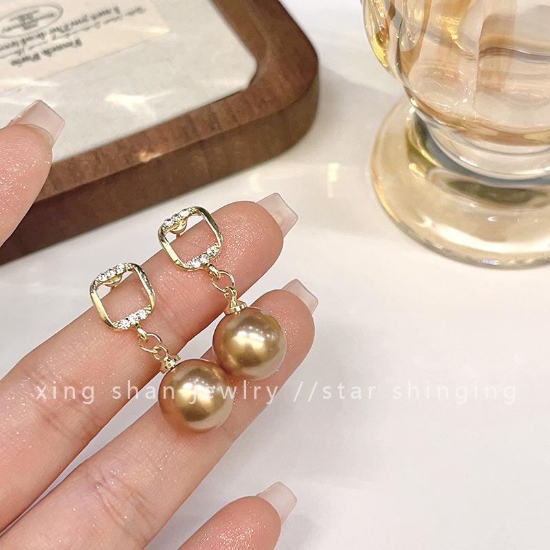 Pendientes de perlas de imitación de oro francés, diseño de nicho femenino, pendientes de alta calidad, nuevos pendientes de temperamento de moda de lujo ligero 2024