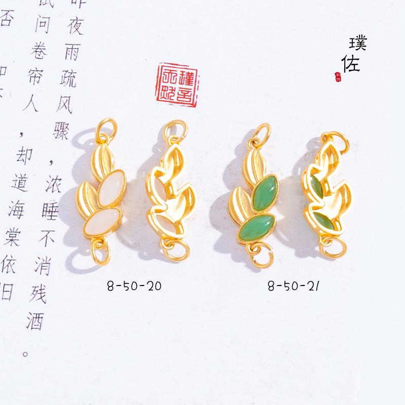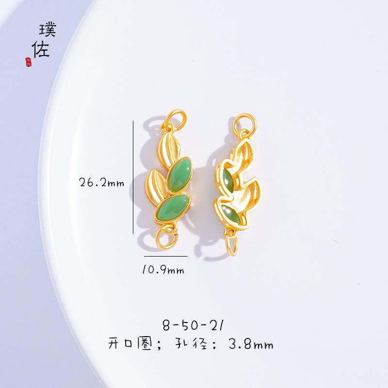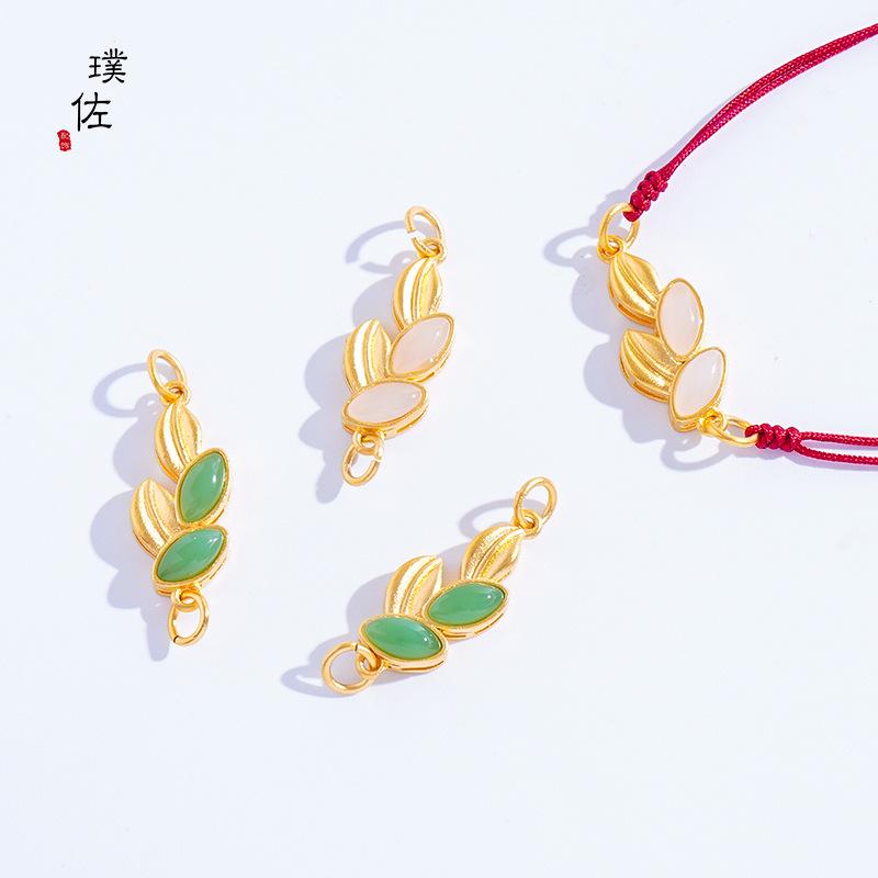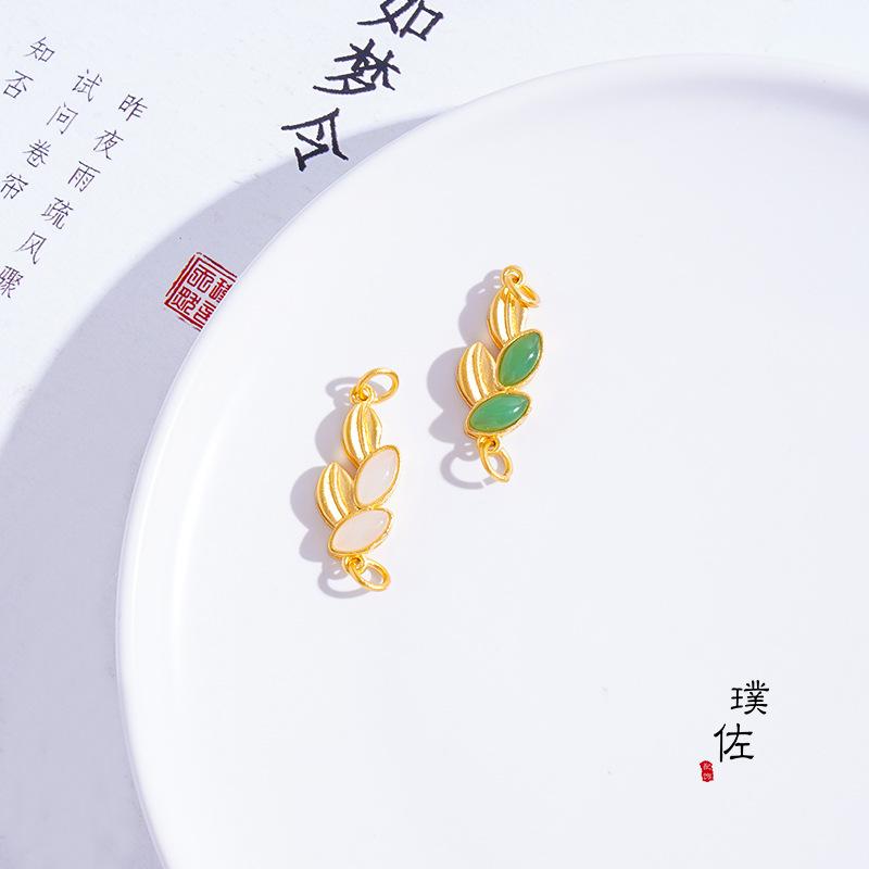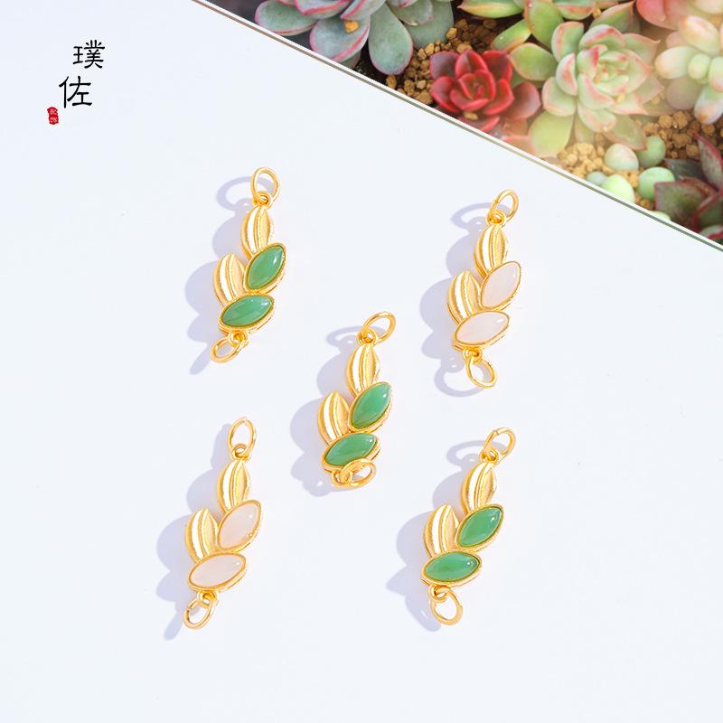Accesorios DIY de oro arena esmerilado antiguo de larga duración que no se desvanecen, hojas de árbol, ramas doradas, pulsera de hoja de jade, pulsera con cuentas, collar para mujer