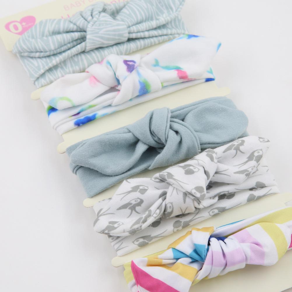 Conjunto de cinco piezas de diadema elástica con lazo para bebé, con orejas de conejo, para el pelo de los niños