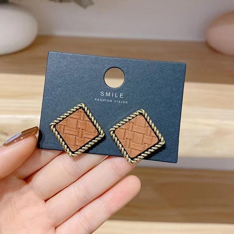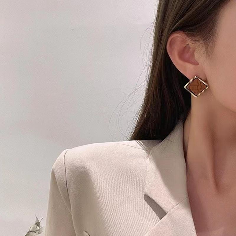 Nuevos pendientes geométricos retro sencillos con aguja de plata s925 para mujer, otoño e invierno, estilo marrón, personalidad, combina con todo, elegantes joyas para las orejas a la moda.