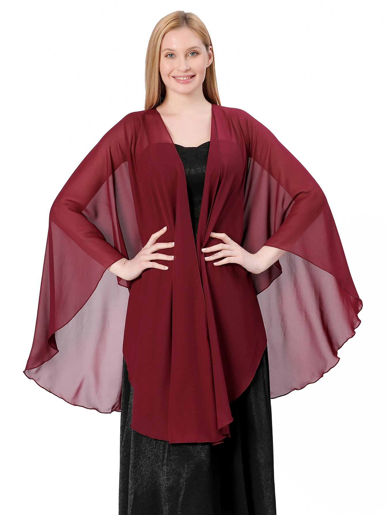 Grupo Dama de Honor Novia Vestido de Boda Chal de Cena Chifón Color Sólido Abertura Chal Grande Femenino Comercio Exterior Transfronterizo Venta al por Mayor