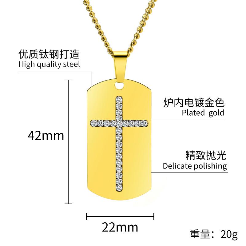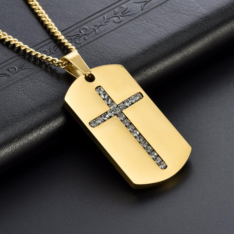 Joyería de Comercio Electrónico Transfronterizo Colgante de Cadena Larga de Moda Europea y Americana para Hombre Marca Militar Cristal Cruz Acero de Titanio