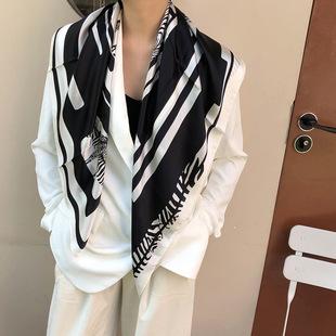 | |  | | | | Bufanda de seda estilo chic europeo y americano bufanda de seda en blanco y negro bufanda temperamento chal grande 90cm bufanda de seda morera al por mayor | | | | | |