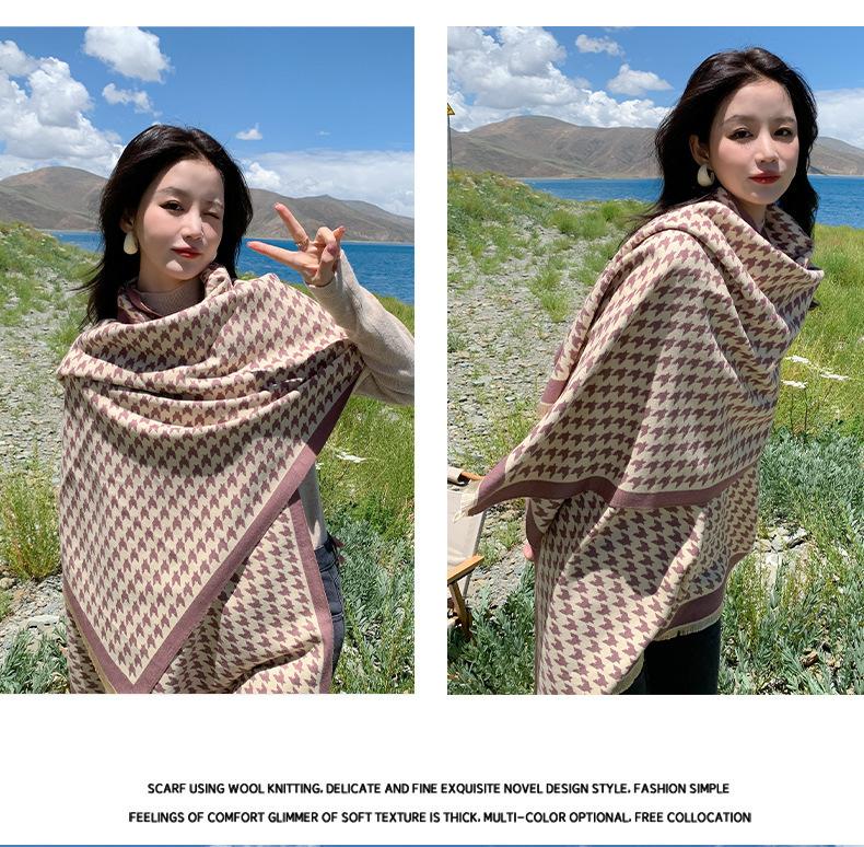 Bufanda de cachemira de imitación para mujer, nueva bufanda de pata de gallo de invierno, chal de moda para todo tipo de combinaciones, bufanda alargada, ensanchada y gruesa.