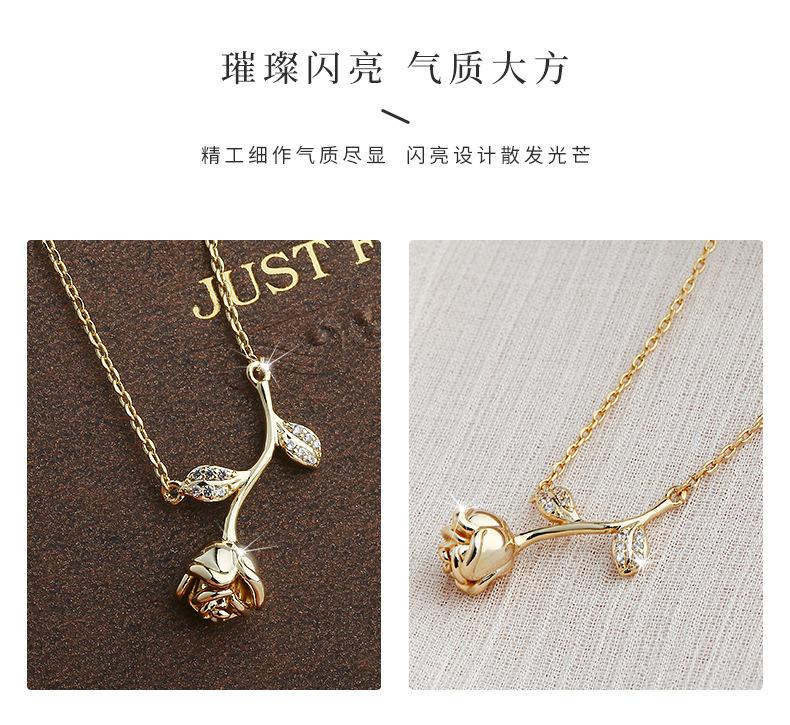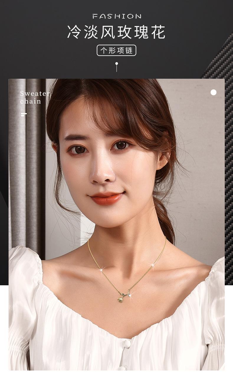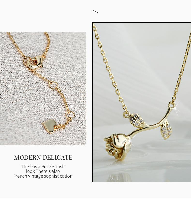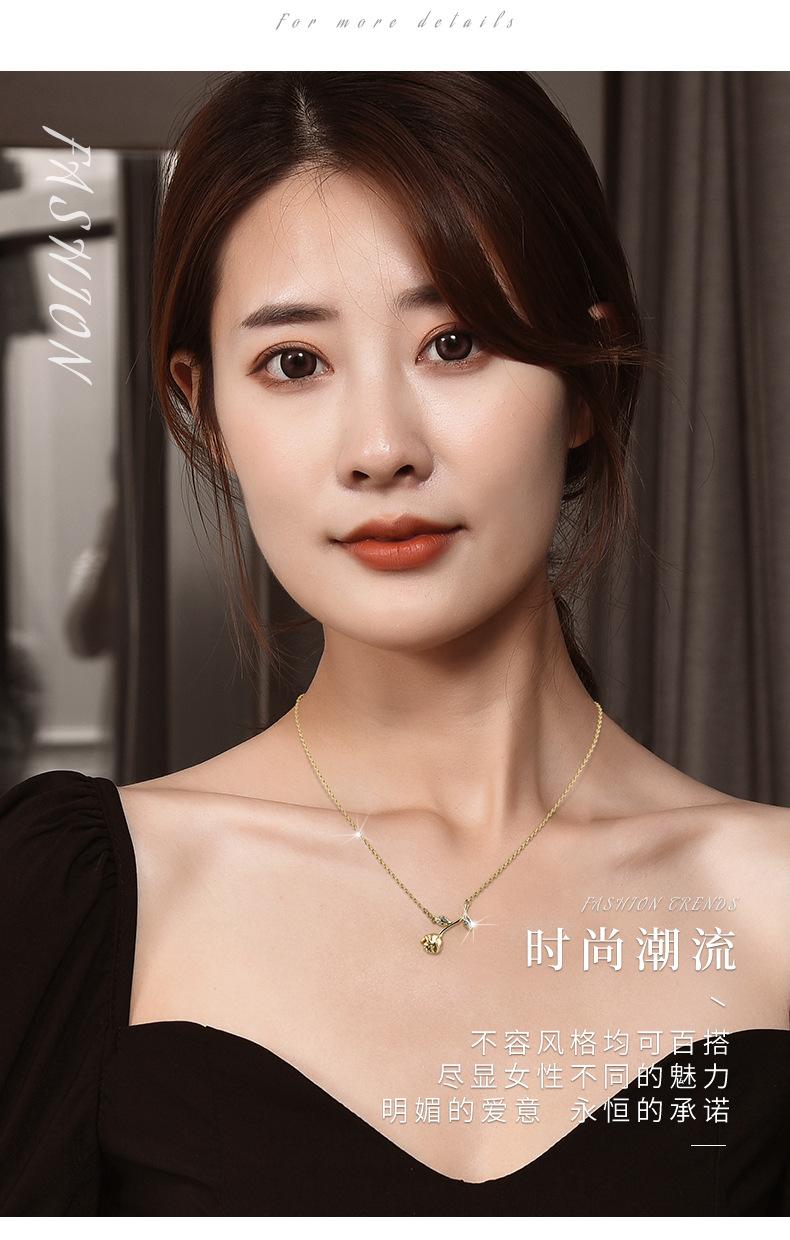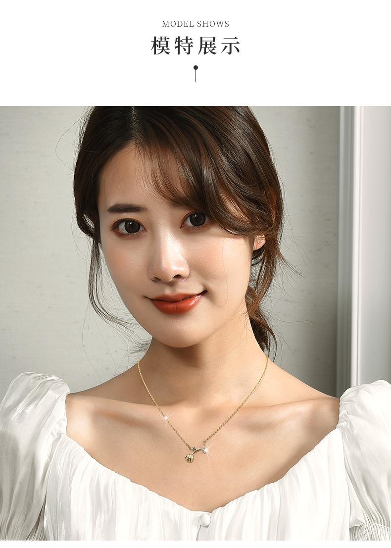 Venta directa de fábrica, collar de circonita con flor de cerezo y acero de titanio para mujer, personalidad de celebridad de Internet, collar de flores y hojas de una pieza de dos piezas al por mayor