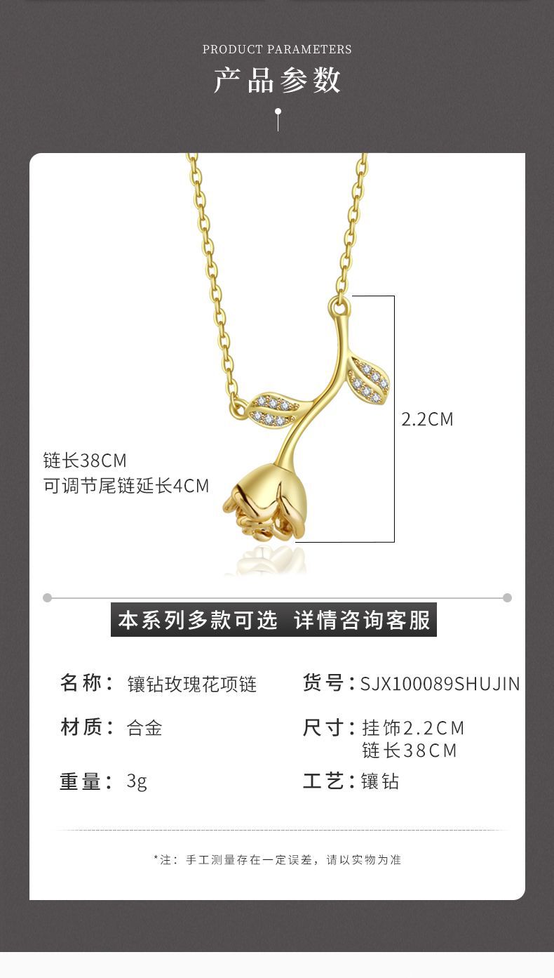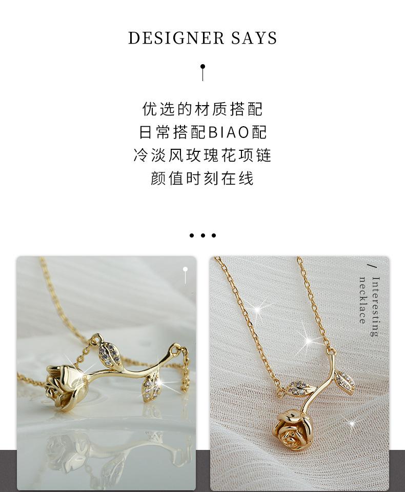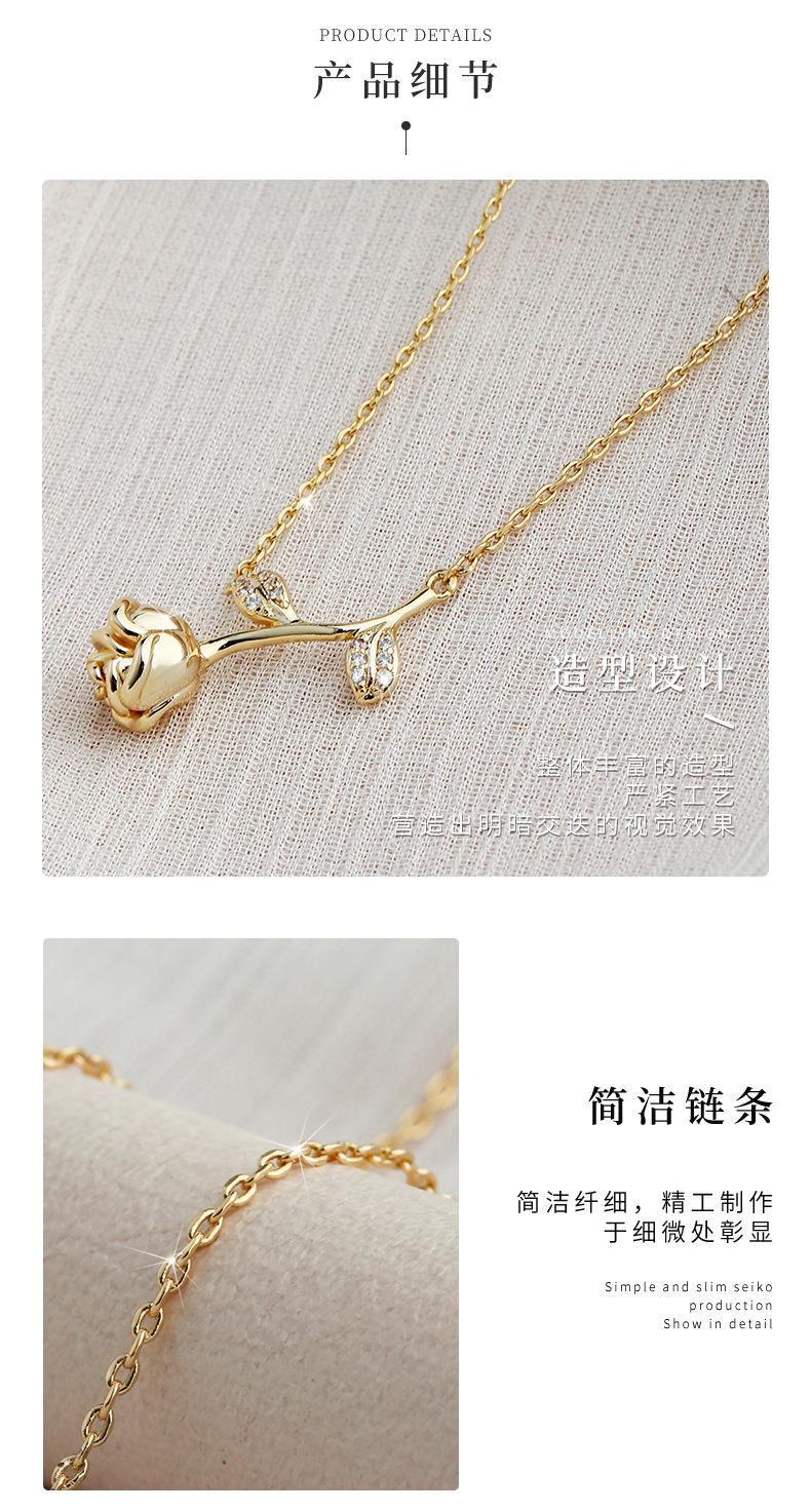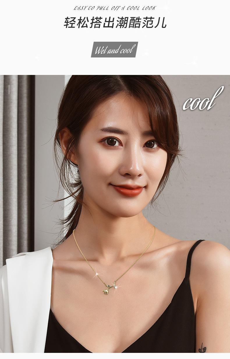 Venta directa de fábrica, collar de circonita con flor de cerezo y acero de titanio para mujer, personalidad de celebridad de Internet, collar de flores y hojas de una pieza de dos piezas al por mayor
