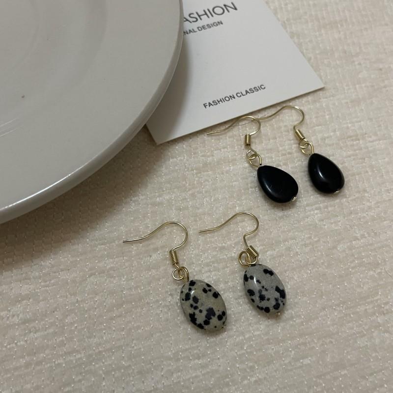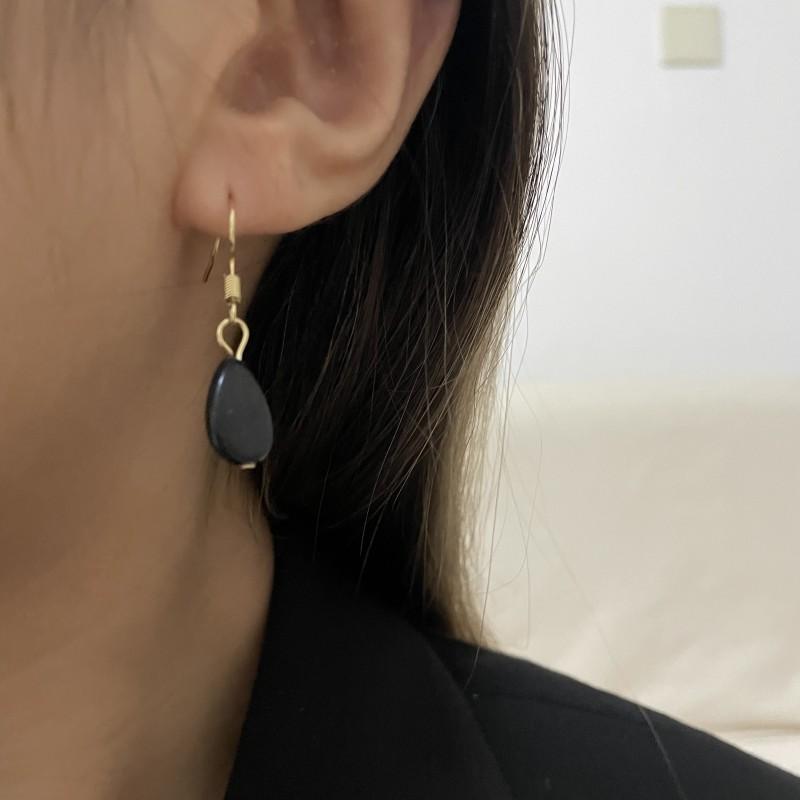 Pendientes de moda de alta calidad con diseño de nicho, estilo retro, con gancho para la oreja geométrico de piedra natural, elegantes y modernos para damas.