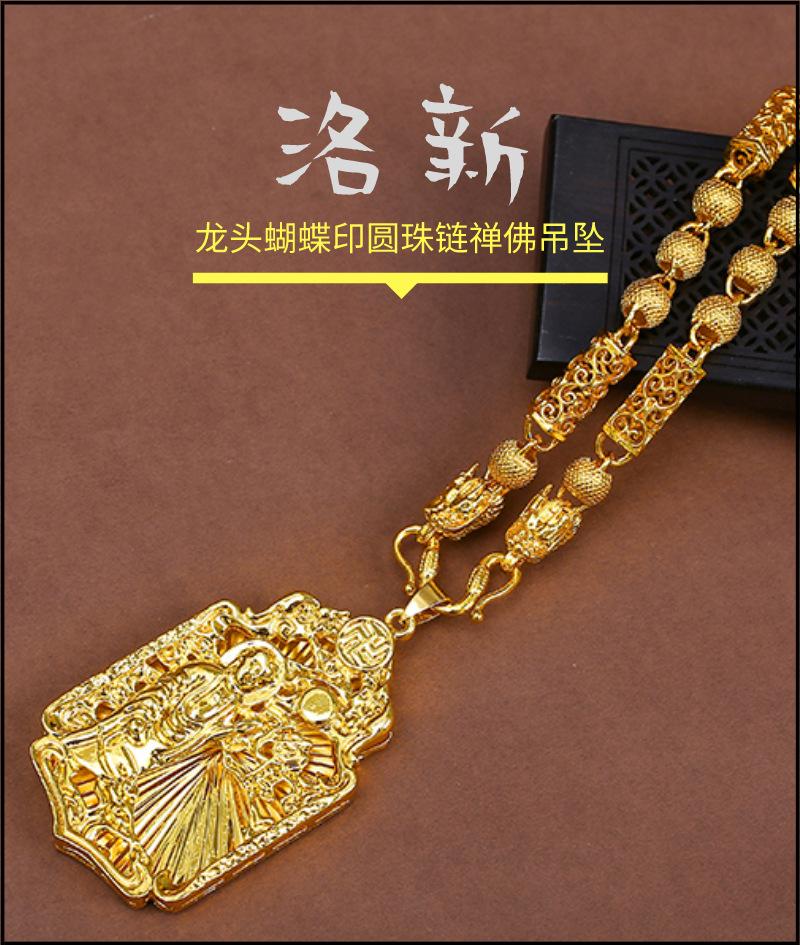 Cadena de cuentas de piña hexagonales con flor de ventana, cadena de emperador, collar de oro chapado en oro para hombre, accesorios, colgante de Buda zen para hombre