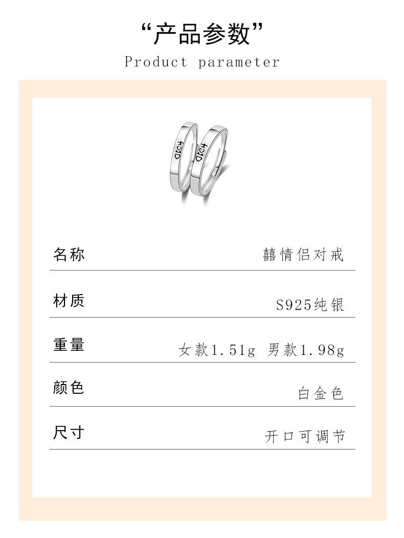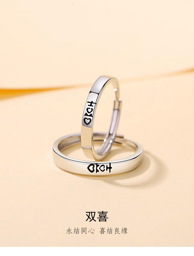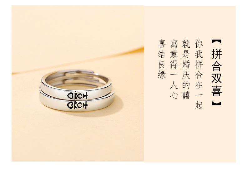 Anillo de Pareja Tipo Empalme de Plata Esterlina S925 Diseño Nicho Anillo Simple Doble Felicidad Abertura Ajustable Anillo para Dieta