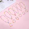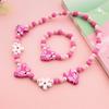 Pulsera de cuentas de madera para niños con diseño de mariposa morada de dibujos animados, color caramelo, con forma de dibujos animados, juego de collar y pulsera.