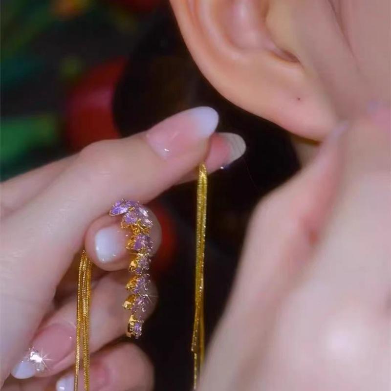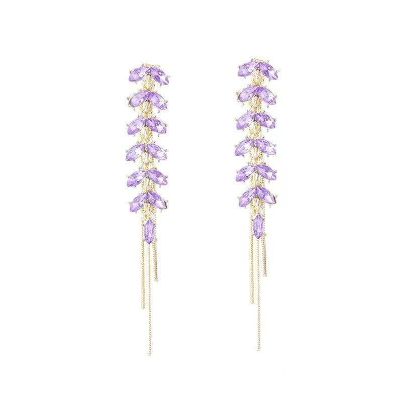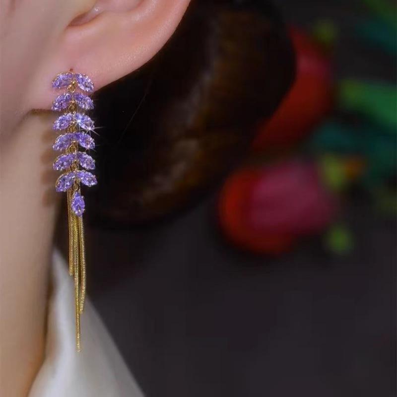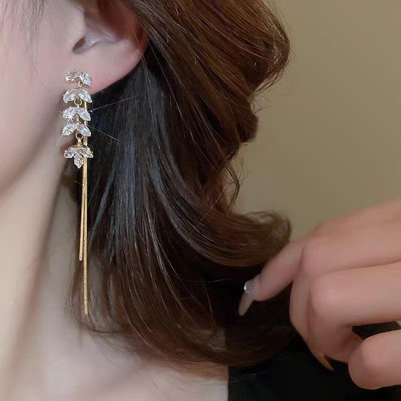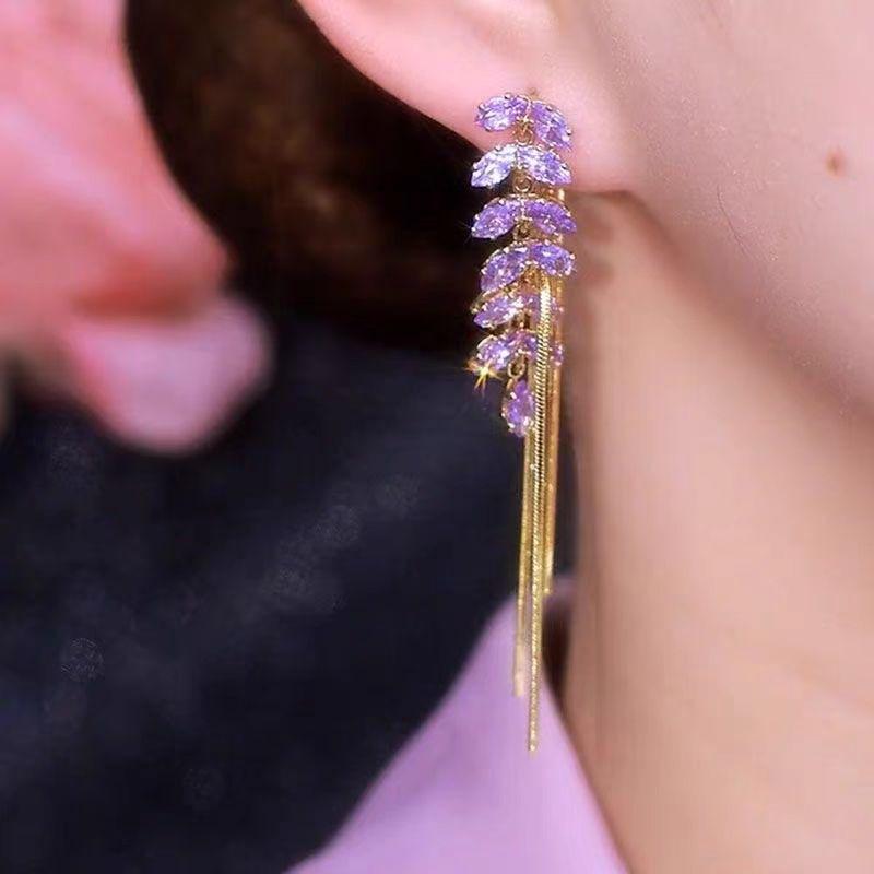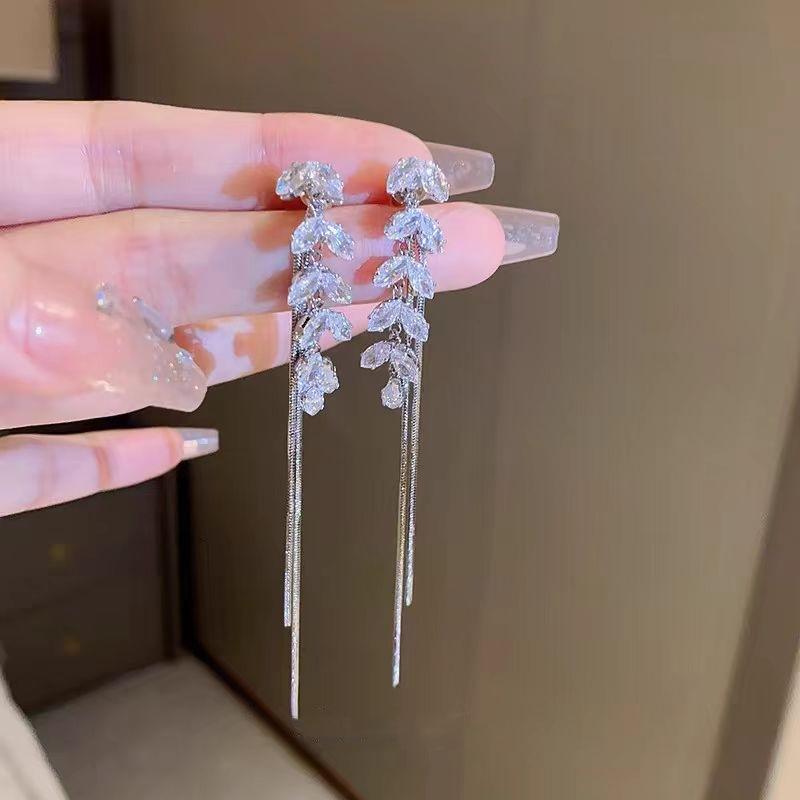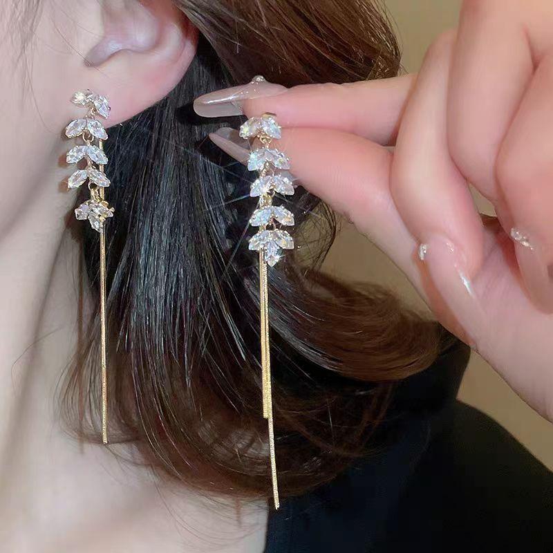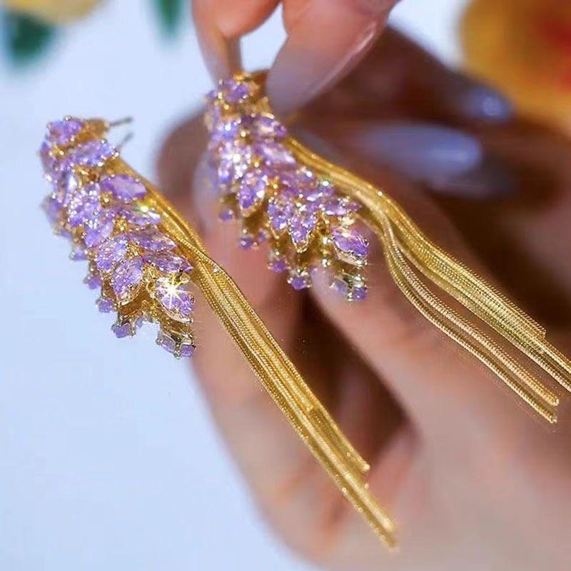 Pendientes de borla de circonita de trigo de alta gama franceses, pendientes largos retro para mujer, pendientes exquisitos de Joker de moda al por mayor