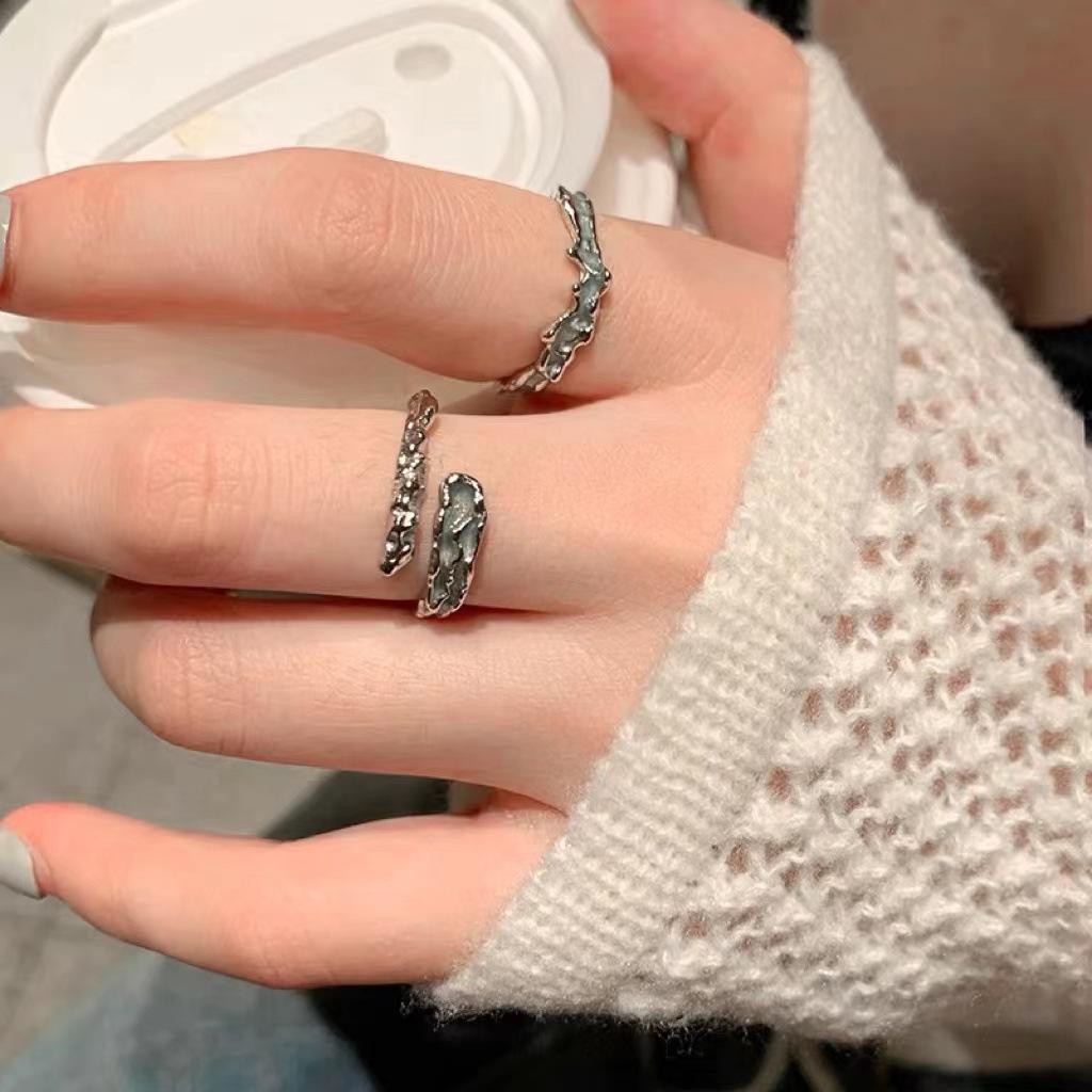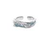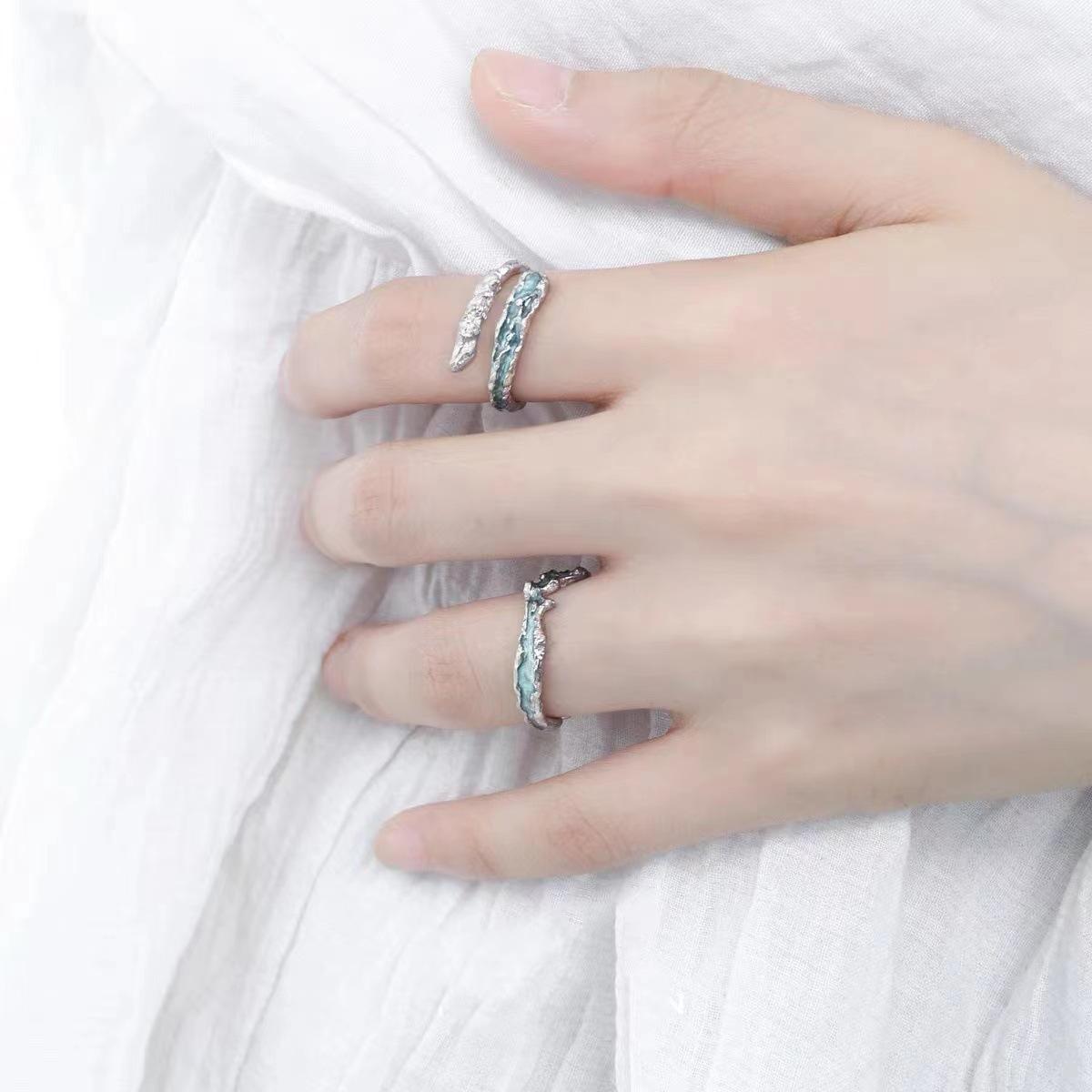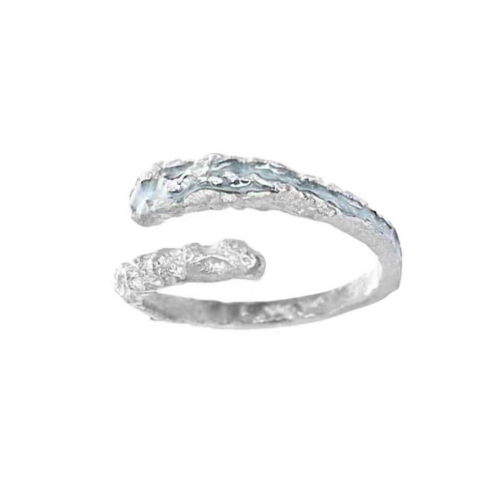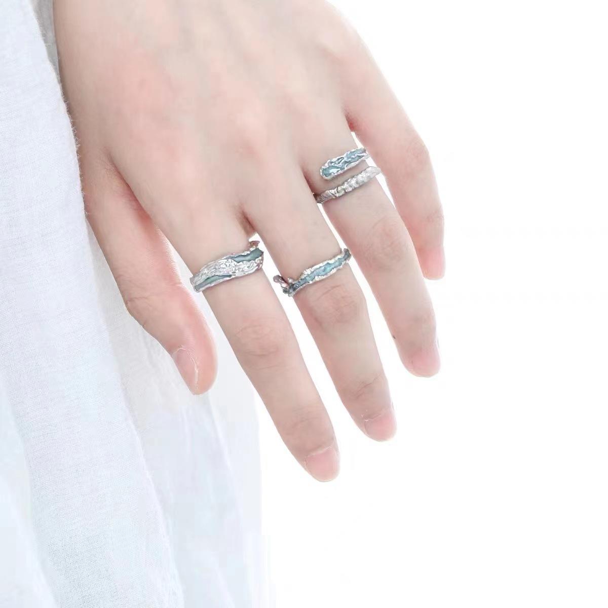 Anillo de pareja con gotas de aceite azul, diseño de nicho para mujer, regalo de alta gama, anillo de apertura con textura de temperamento que combina con todo.