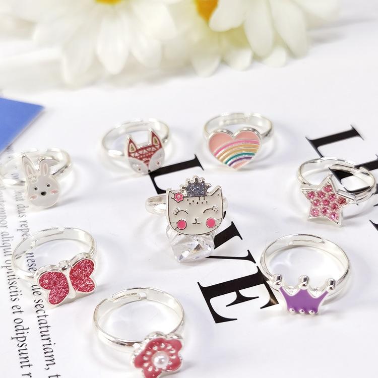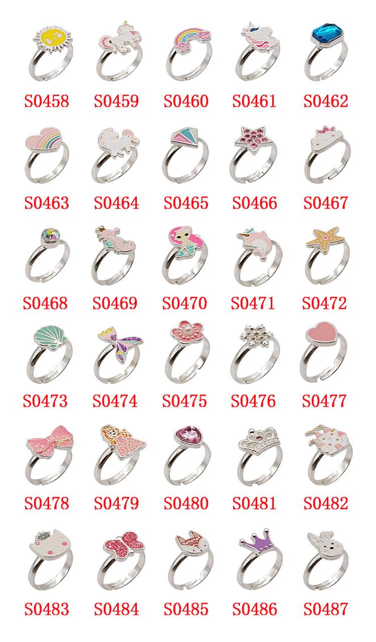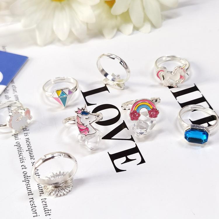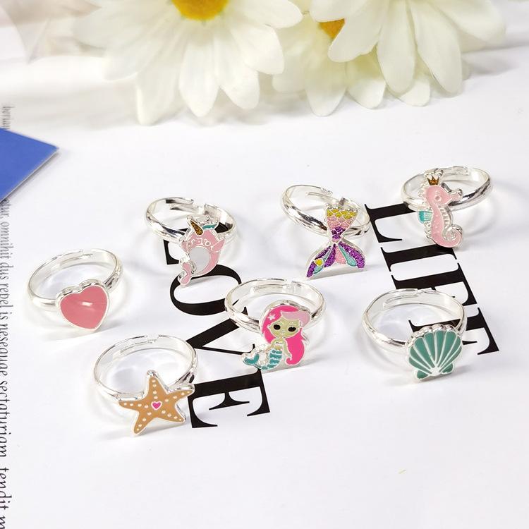 Anillo para niños, unicornio, sirena, princesa, aleación, gota de aceite, anillo ajustable, dibujos animados, niña pequeña, joyería al por mayor
